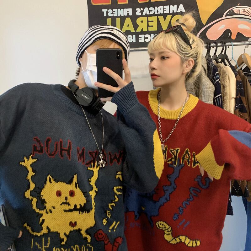 セーター レディース秋物ウィンター韓国ファッショントレンドジャカードルーズコート オータム 冬物 ボーイズ スタイル デーモン7005591882