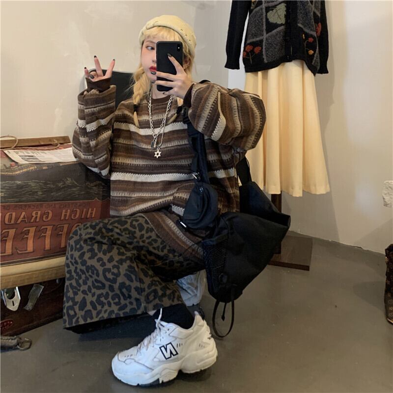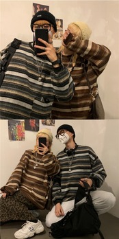 プルオーバー セーター 秋物ウィンター韓国ファッショントレンドスタンダードストライプルーズウールレディース レトロ オータム 冬物 ボーイズ スタイル デーモン6171208508
