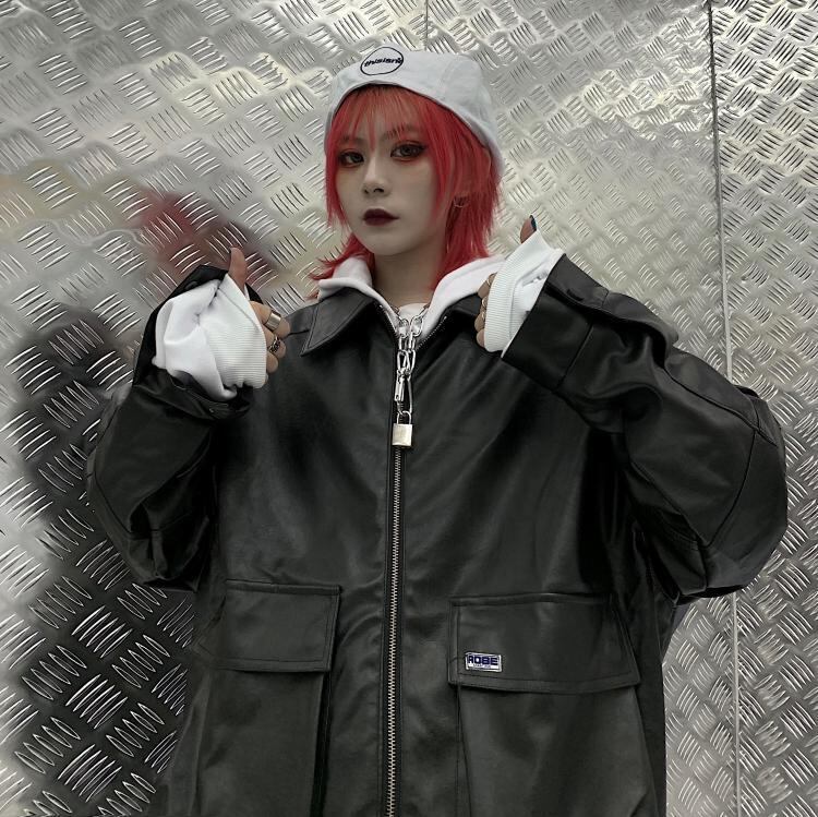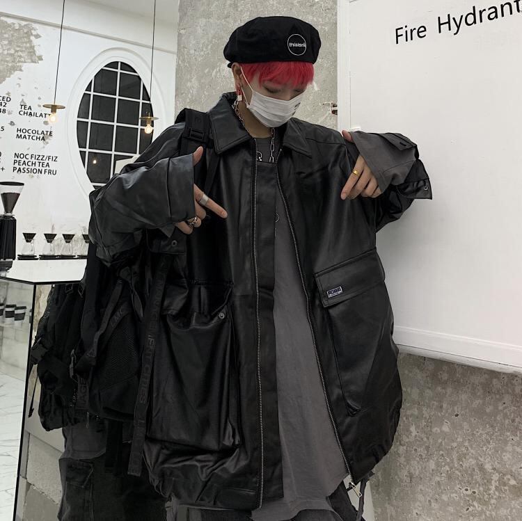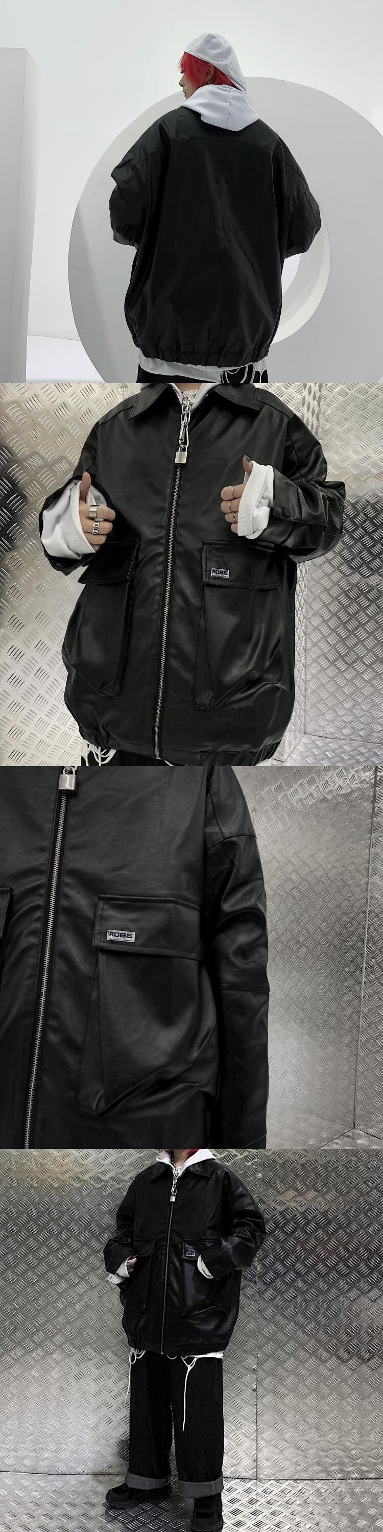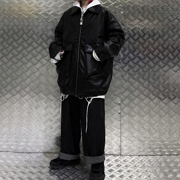 ウィンター韓国ファッションスタンダードルーズポケットレザージャケット メンズレディース レトロ 冬物 デーモン26255294791