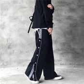 ワイドレッグパンツ レディース韓国ファッショントレンドスタイルブレストルーズハイウェストウェストカジュアル 原宿 ワイドパンツ ウエスト デーモン15267369756