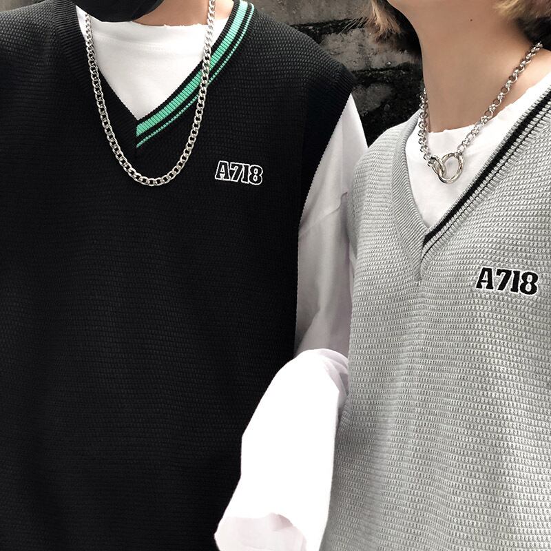 セーター 秋物韓国ファッショントレンドVネックルーズニット オータム ボーイズ スタイル ウエスト デーモン76850080050