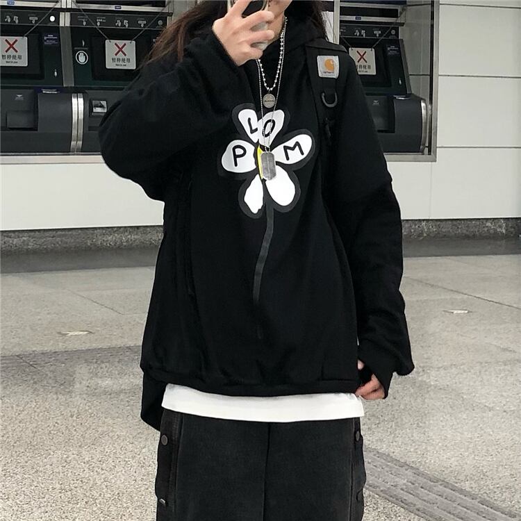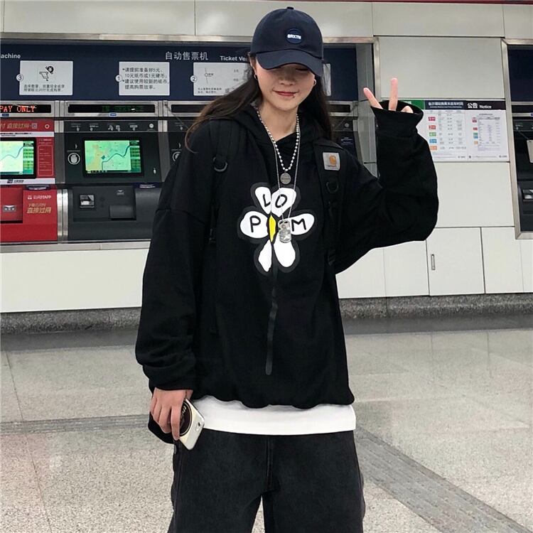 フードセーター レディース秋物ウィンター韓国ファッショントレンドFlowerデザイン プリントルーズ厚みジャケット ストリート オータム 冬物 フラワーデザイン ボーイズ スタイル デーモン15717922077