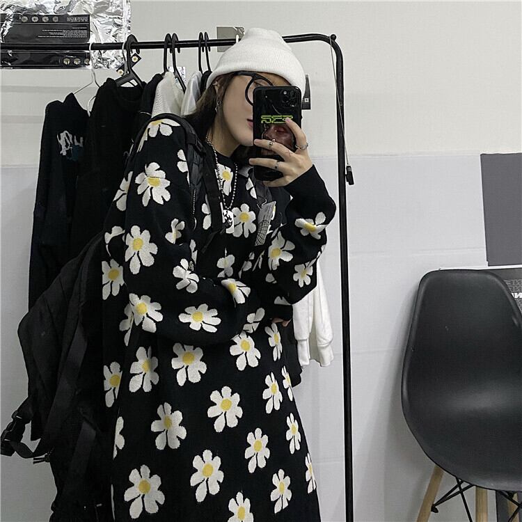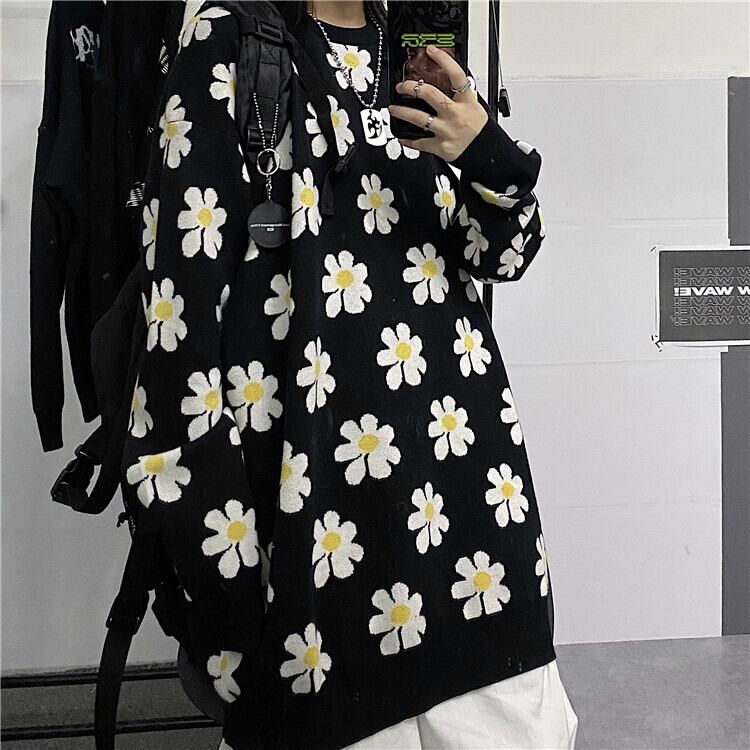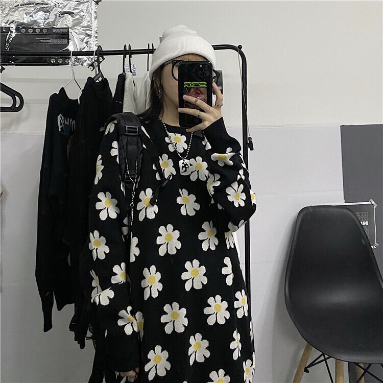 秋物ウィンターセーター レディース韓国ファッショントレンドスタンダードFlowerデザイン ジャカードルーズプルオーバー ロング レトロ オータム 冬物 フラワーデザイン スタイル 長袖 デーモン12326145401