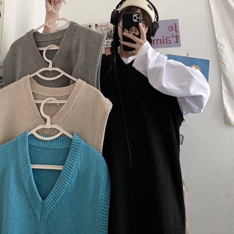 秋物ウィンター韓国ファッショントレンドソリッド カラーVネックルーズセーター オータム 冬物 ソリッドカラー ボーイズ スタイル デーモン33121967033