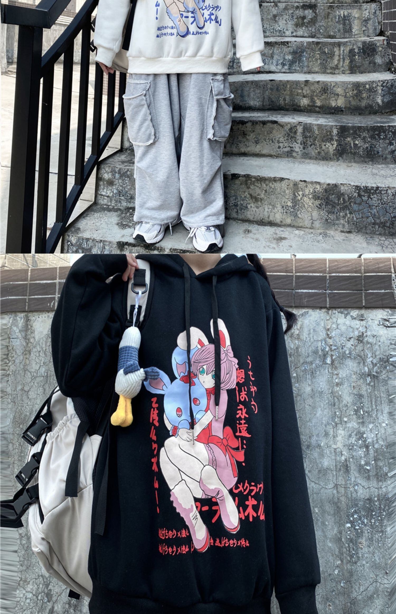 秋物ウィンターセーター レディース韓国ファッショントレンドプリント柄ルーズフードジャケット オータム 冬物 ボーイズ スタイル デーモン56973545837