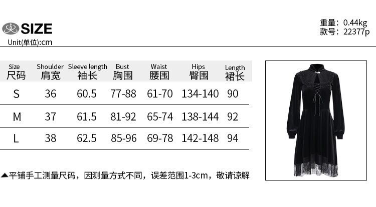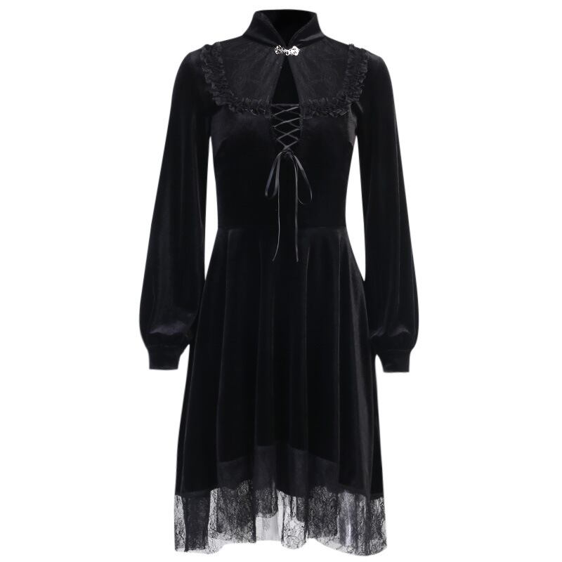 スタンダードカラー秋物ウェスト薄手ワンピースレディーストレンドレースブラック レトロ オータム ウエスト YU92405581688