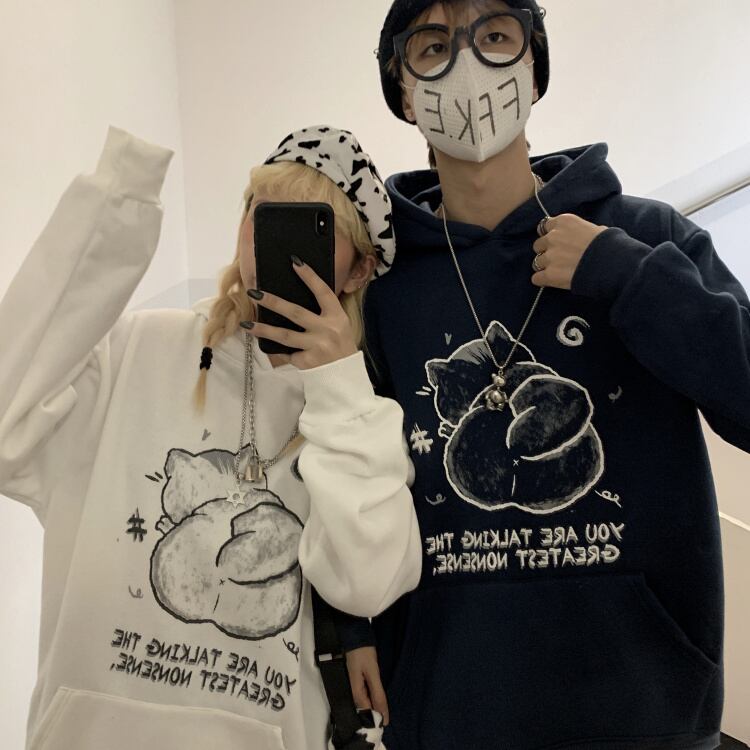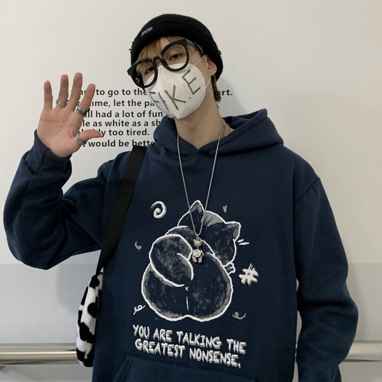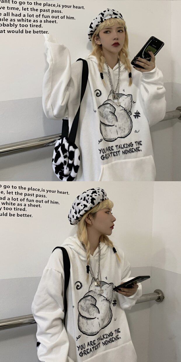 セーター レディース秋物ウィンター韓国ファッショントレンドスタイルプリント柄ルーズフードジャケット 原宿 オータム 冬物 デーモン2563854950