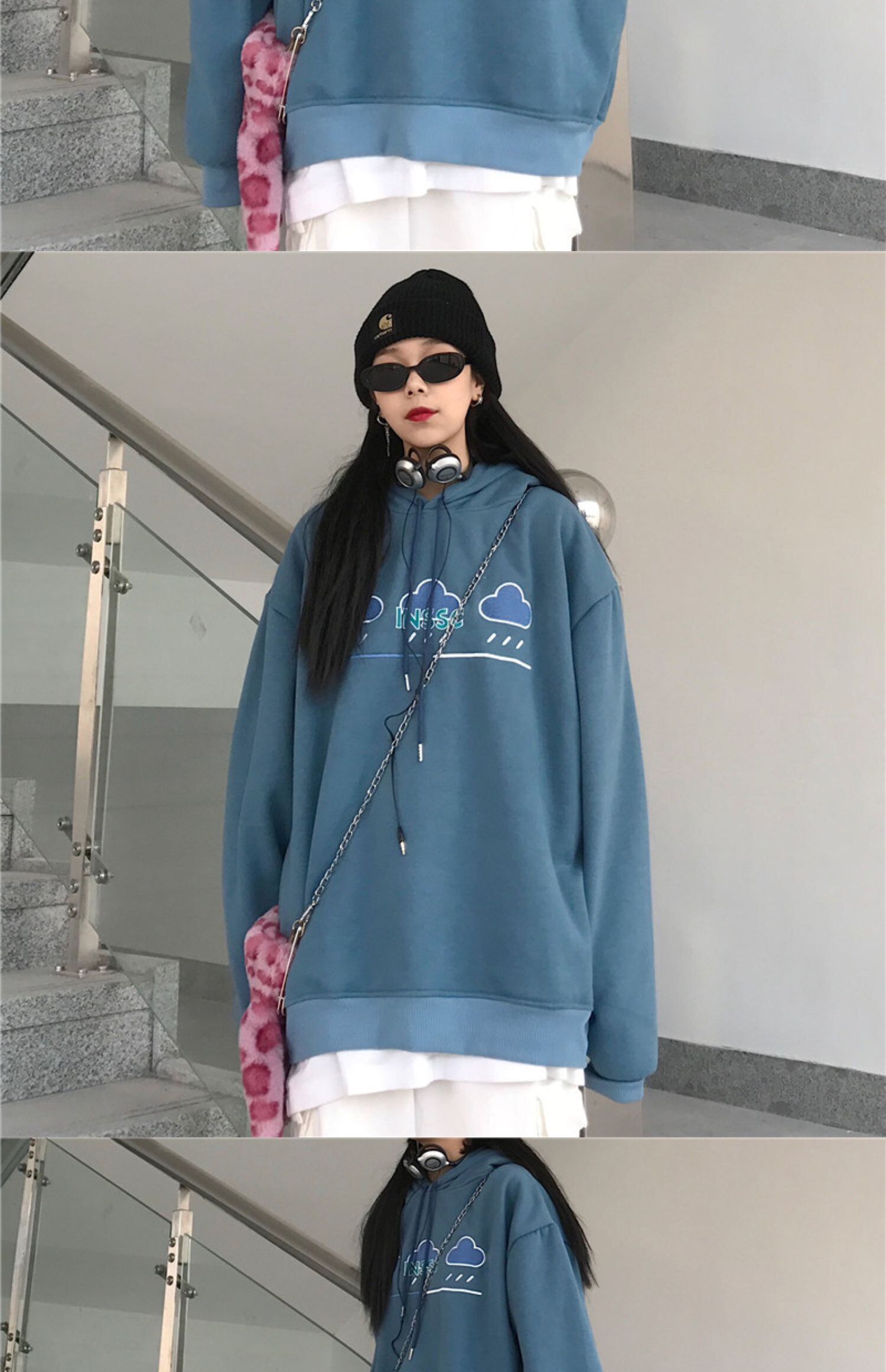 セーター レディース秋物ウィンター韓国ファッショントレンド刺繍ルーズフードプルオーバー ジャケット オータム 冬物 ボーイズ スタイル デーモン41734596575