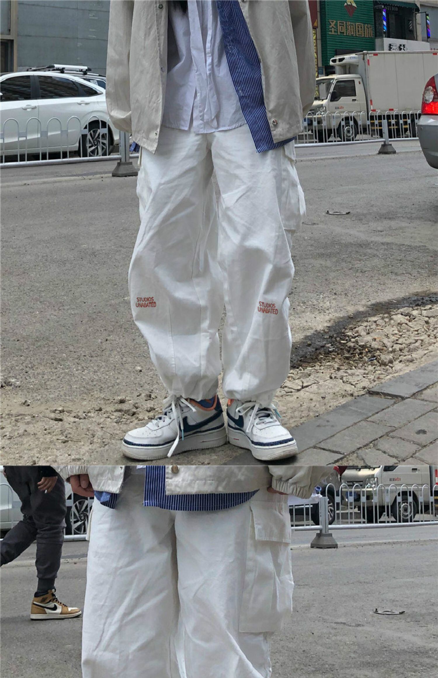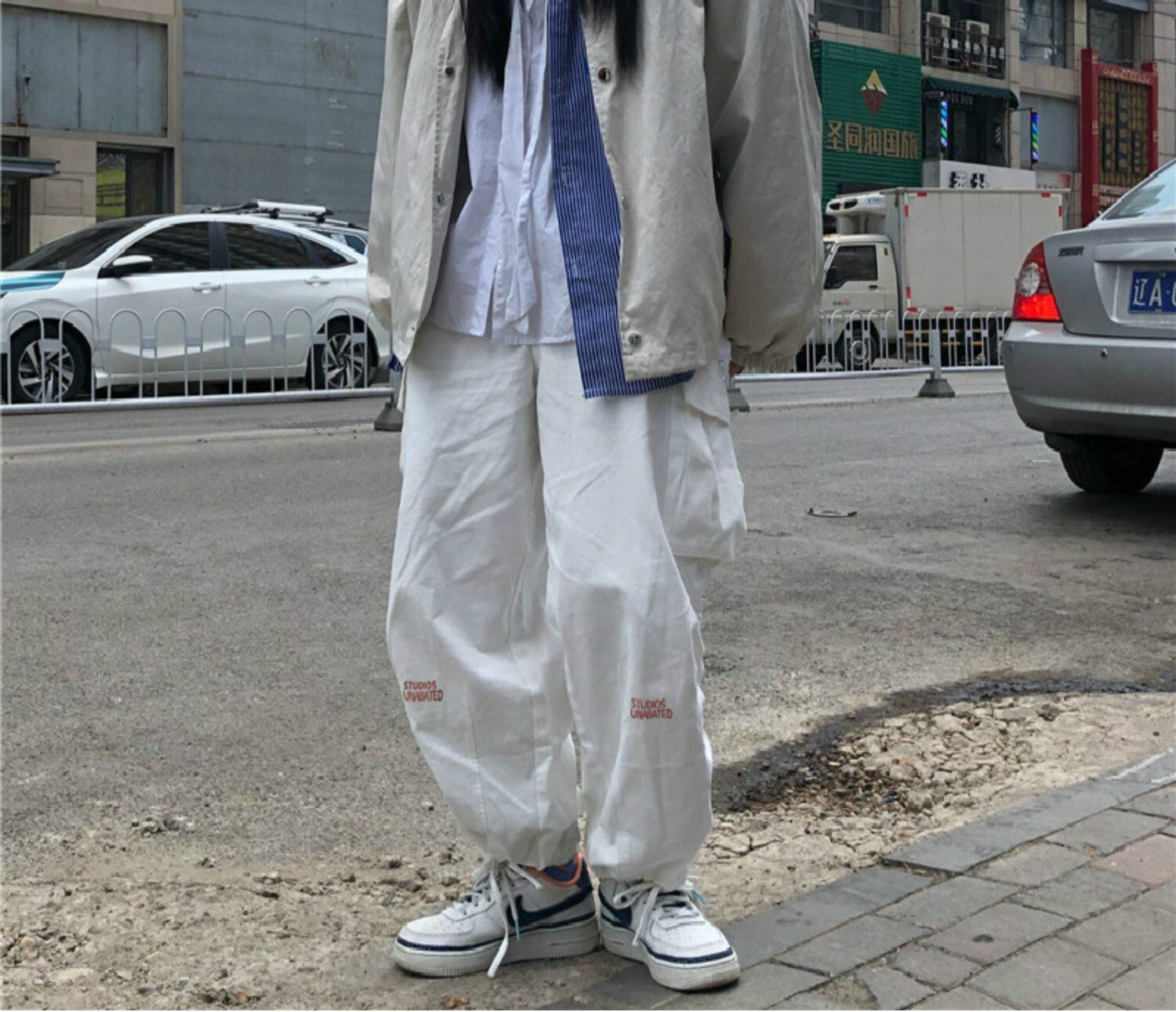パンツ 秋物ウィンタートレンドスタンダードホワイトルーズハイウェストウェスト レトロ オータム 冬物 ボーイズ ウエスト デーモン65581720088
