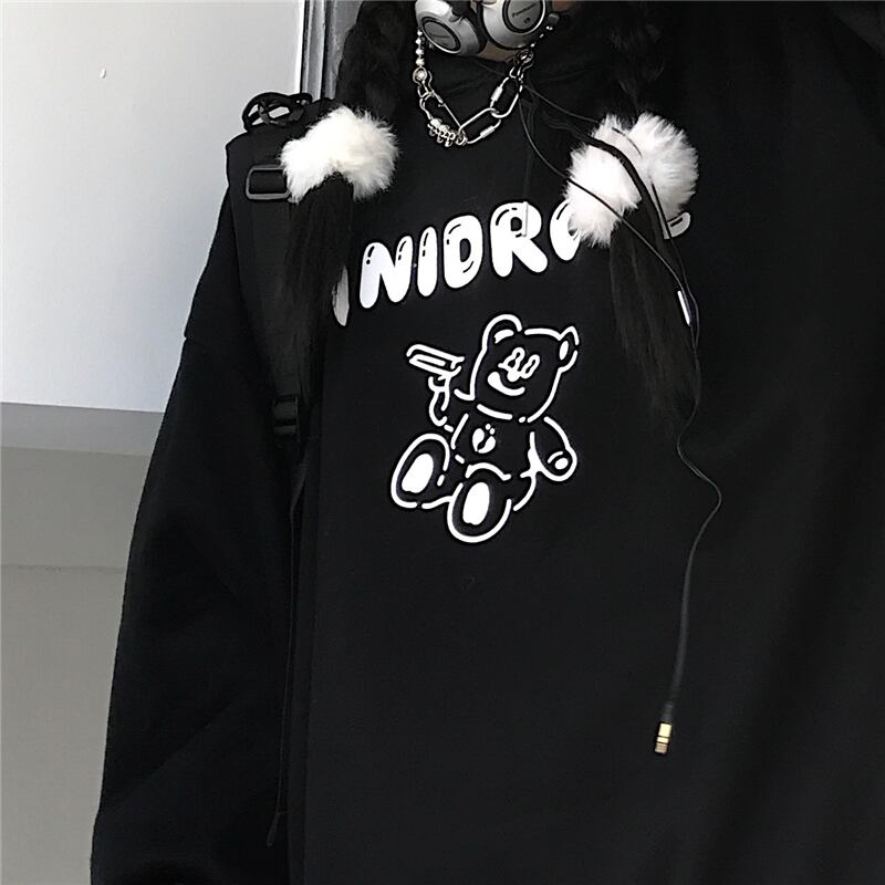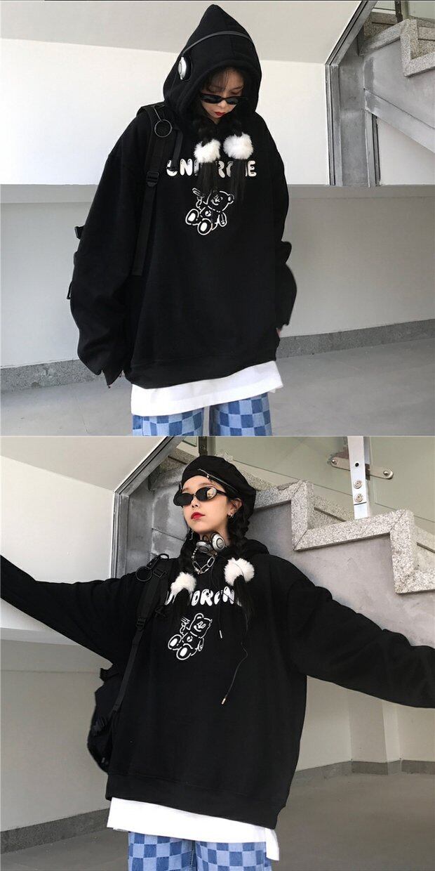 秋物ウィンターセーター レディース韓国ファッショントレンドプリント柄ルーズフードジャケット オータム 冬物 ボーイズ スタイル デーモン52014090979