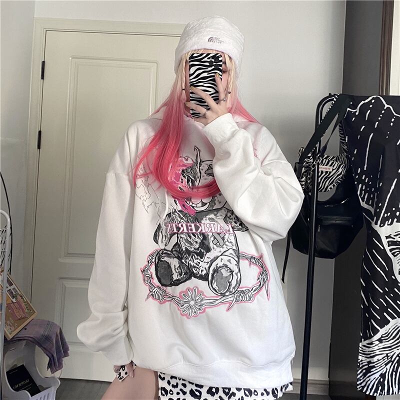 秋物ウィンタージャケット レディース韓国ファッショントレンドダークプリント柄ルーズ厚みフードセーター オータム 冬物 ボーイズ スタイル デーモン32686919478