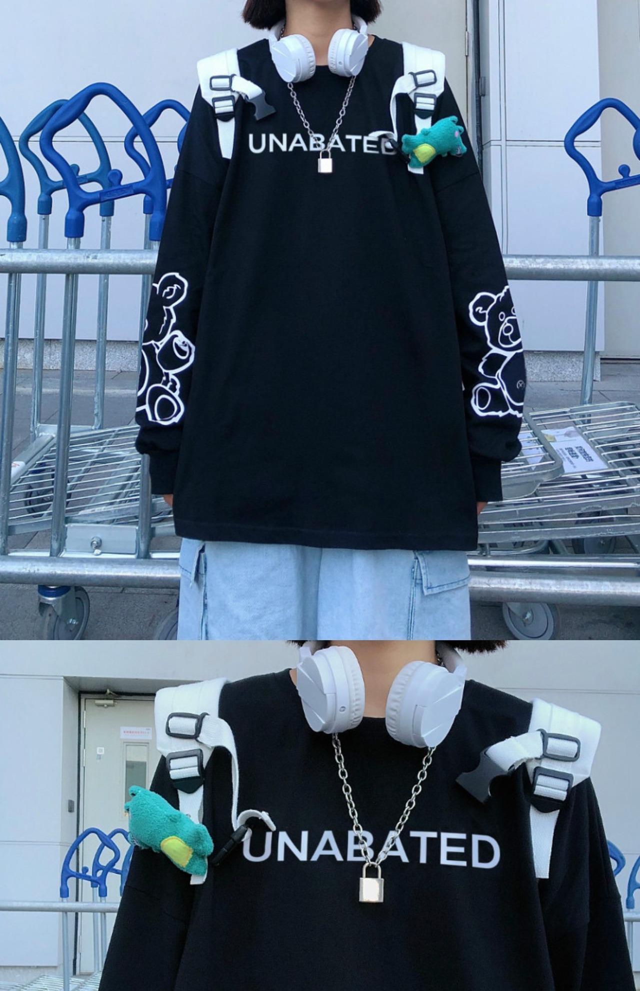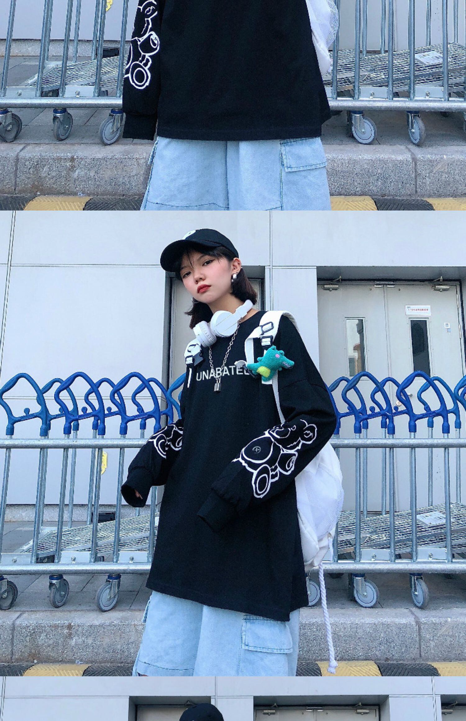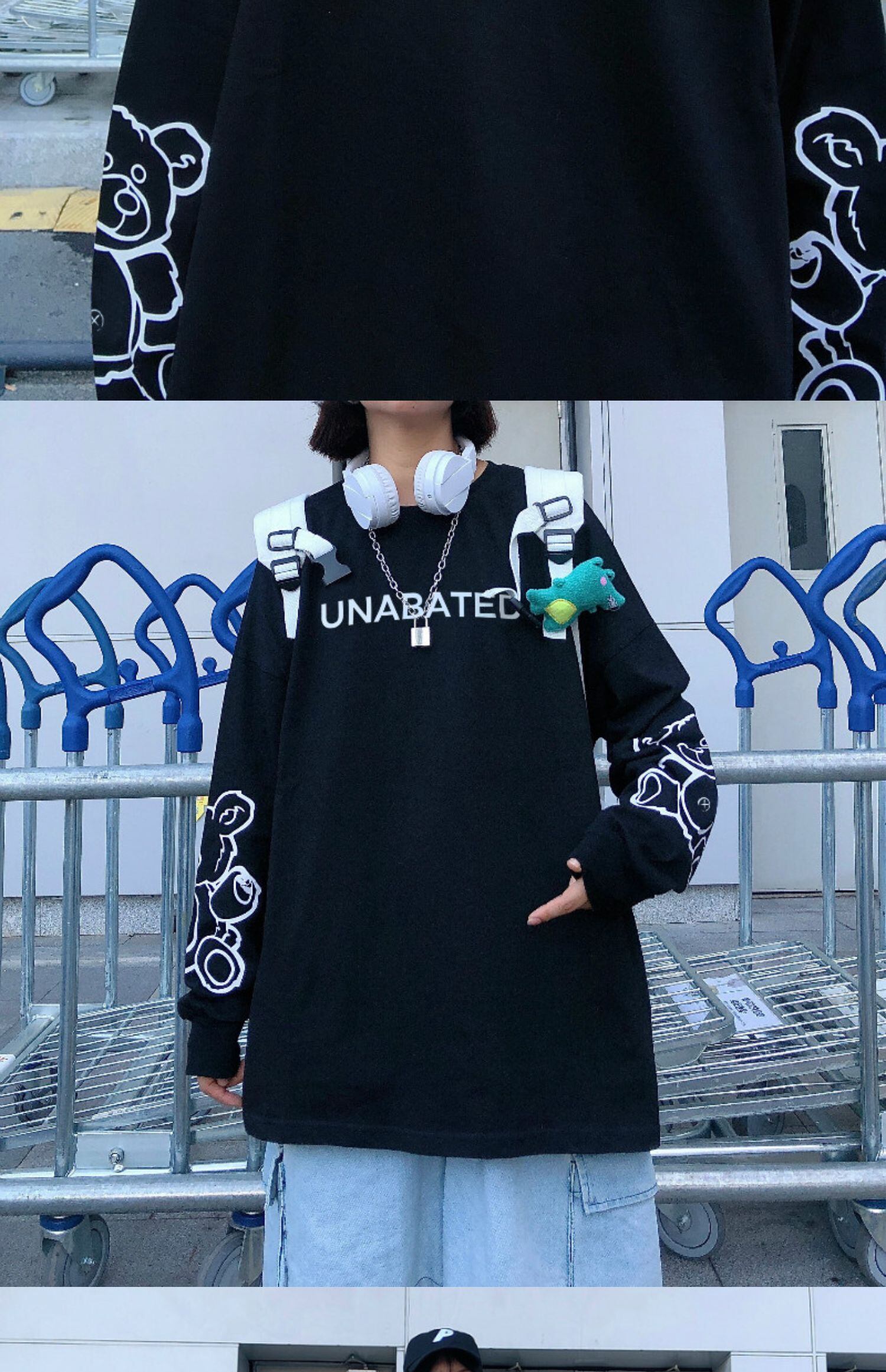 秋物レディーストレンド韓国ファッションプリントホワイトルーズTシャツトップス ロング オータム スタイル 長袖 デーモン34707946360
