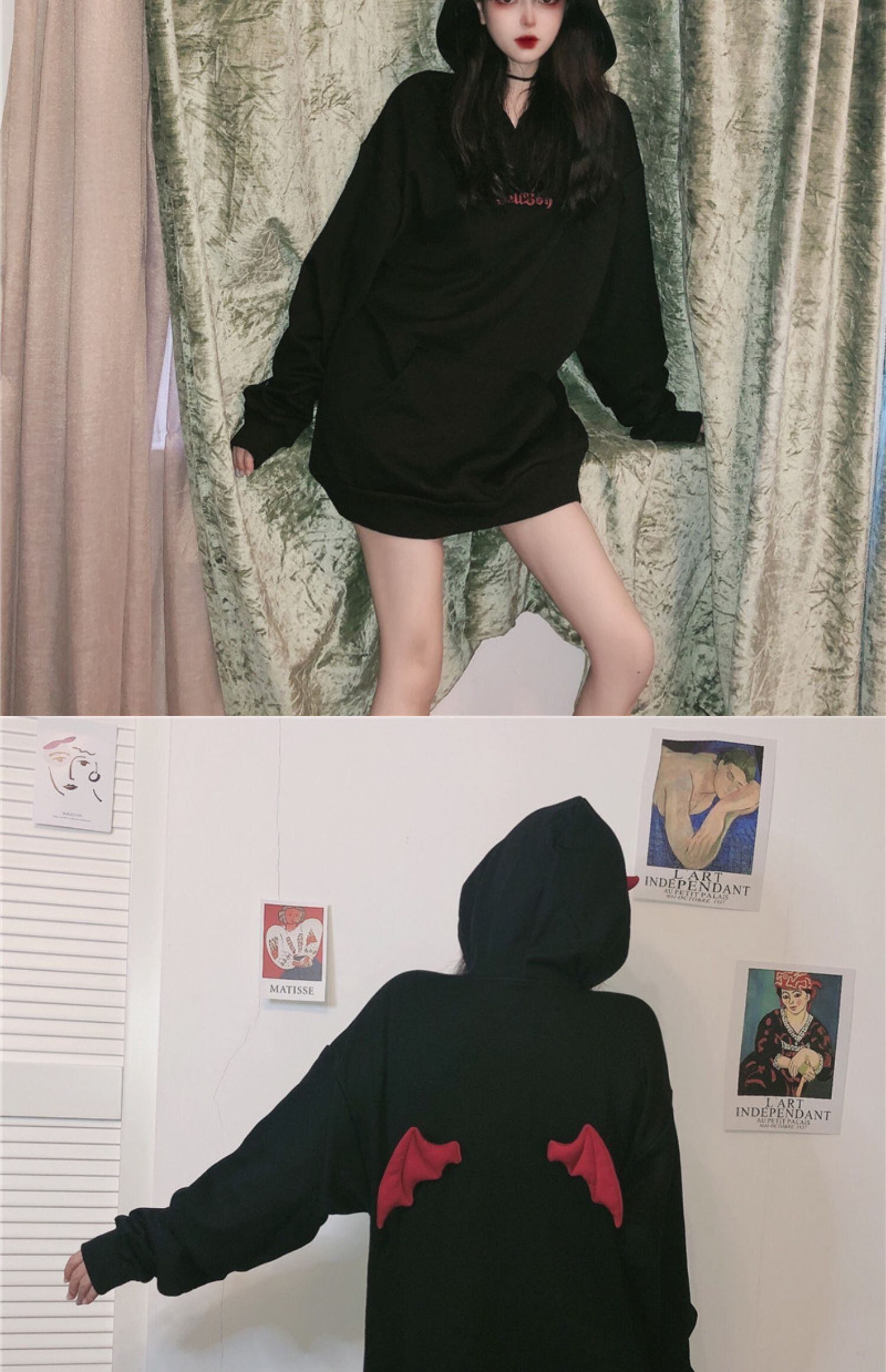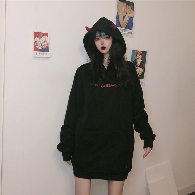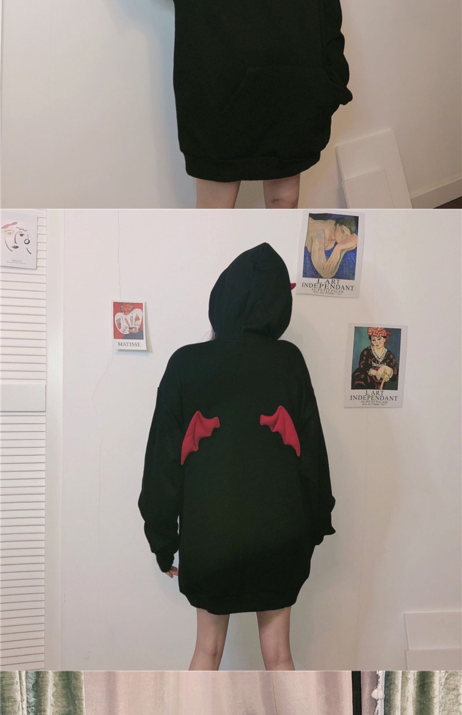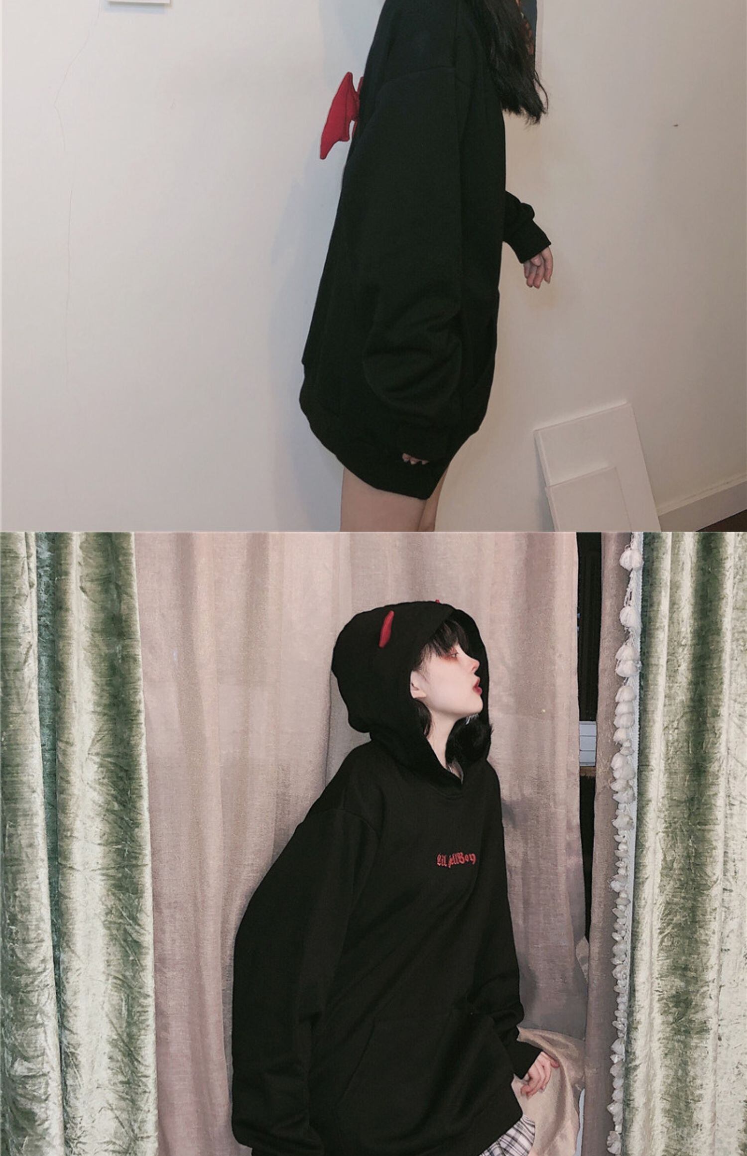 秋物ジャケット レディーストレンド韓国ファッションダークブラックフードセーター ルーズ薄手 オータム スタイル デーモン88576673125