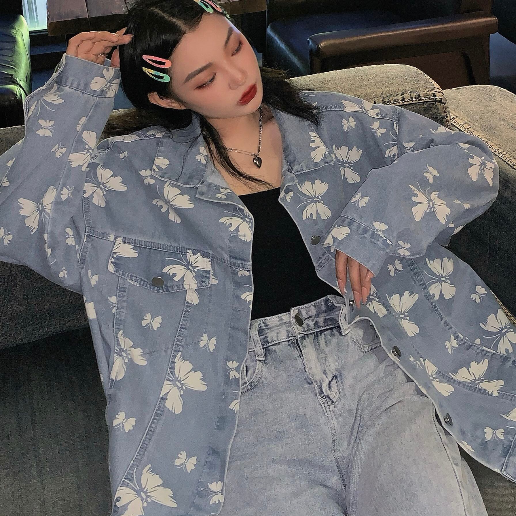 ジャケット レディース韓国ファッションスタンダードButterflyデザイン プリント柄ルーズスタイルトップス ロング レトロ ストリート ボーイズ 長袖 デーモン11373079222