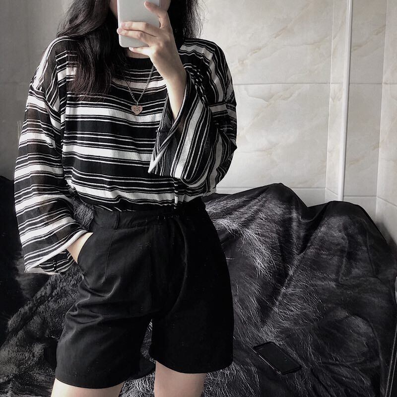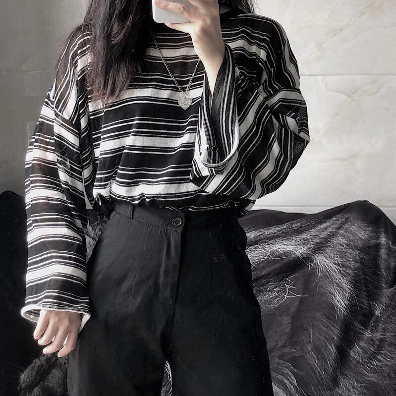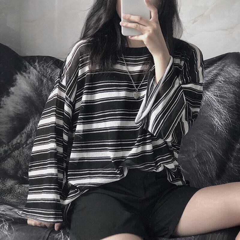 秋物レディース韓国ファッショントレンドスタンダードストライプTシャツシャツ ルーズゆったりトップス ロング レトロ オータム ボーイズ スタイル 長袖 デーモン53385461673