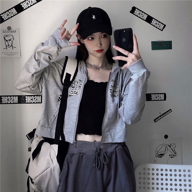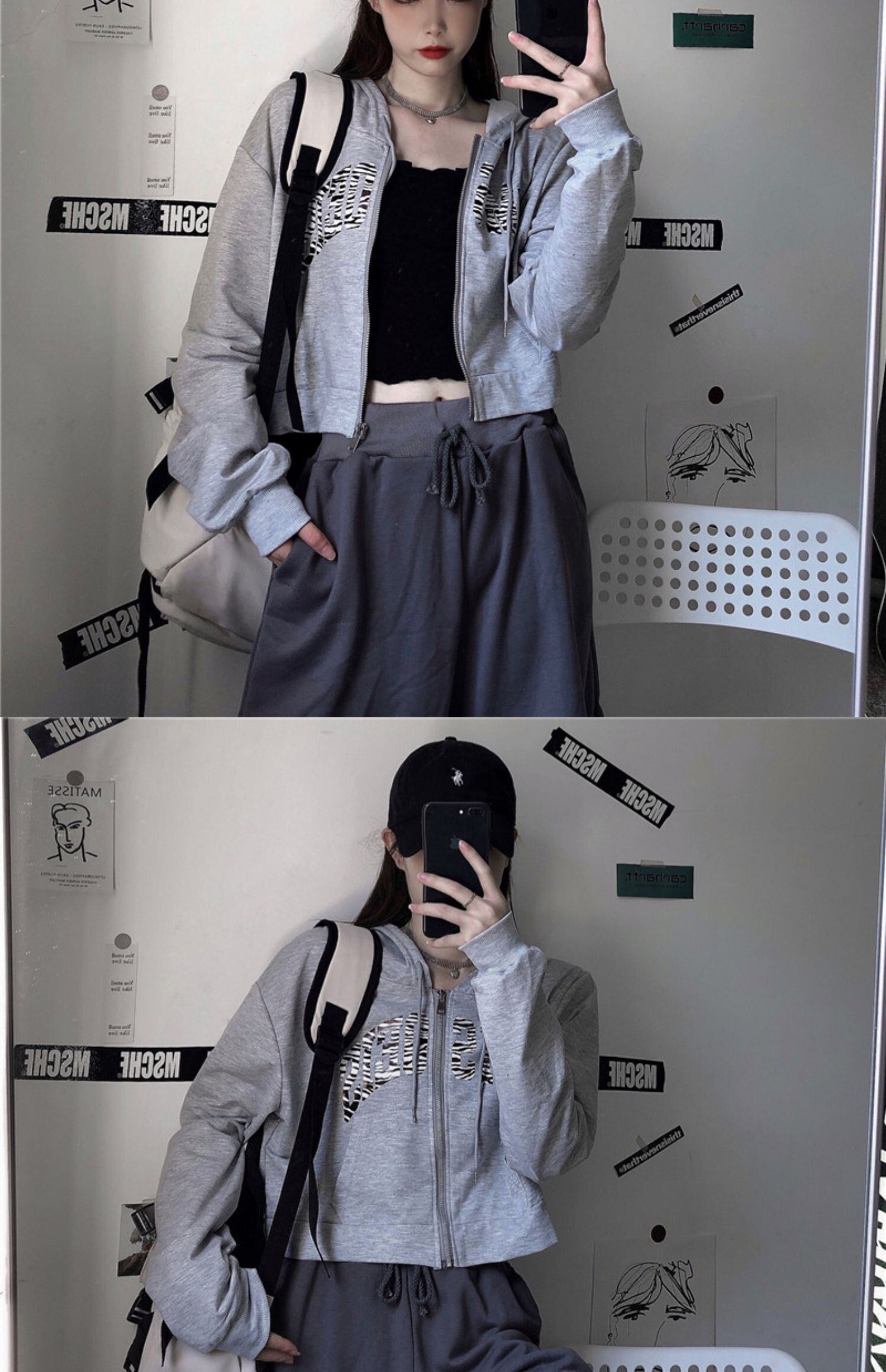秋物レディース韓国ファッションスタイルプリント柄フードセーター ショートルーズトップス コート 原宿 オータム ボーイズ デーモン56070790541