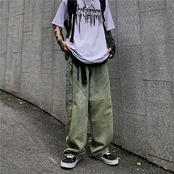 パンツ レディース韓国ファッショントレンドスタンダードジーンズ ハイウェストウェストルーズカジュアル レトロ スタイル ウエスト デーモン45110473364