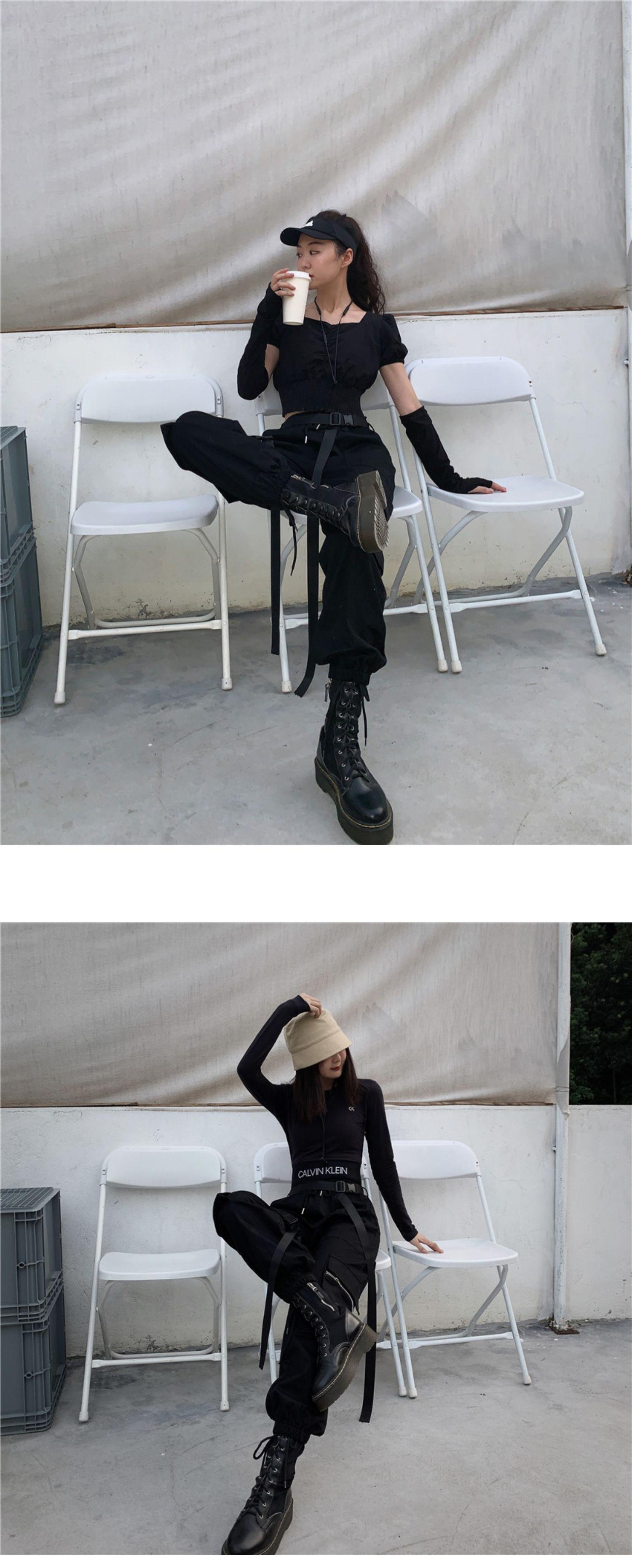 パンツレディース韓国ファッショントレンドブラックカジュアルハイウェストウェストルーズ薄手パンツ ボーイズ スタイル ウエスト デーモン43259853704