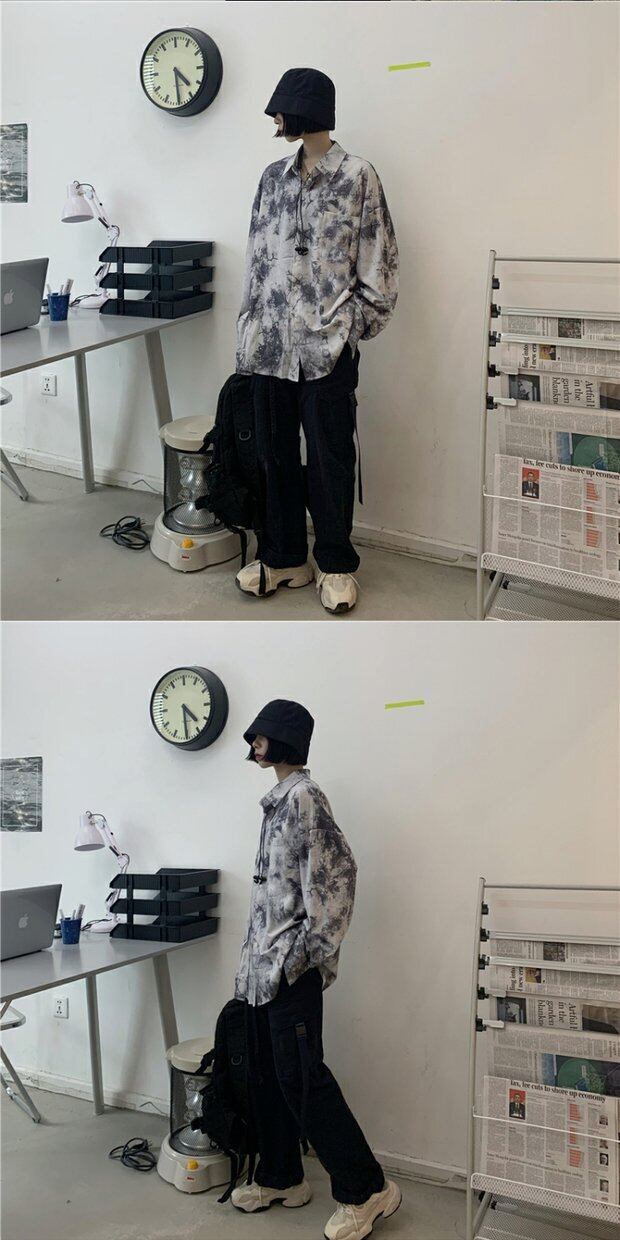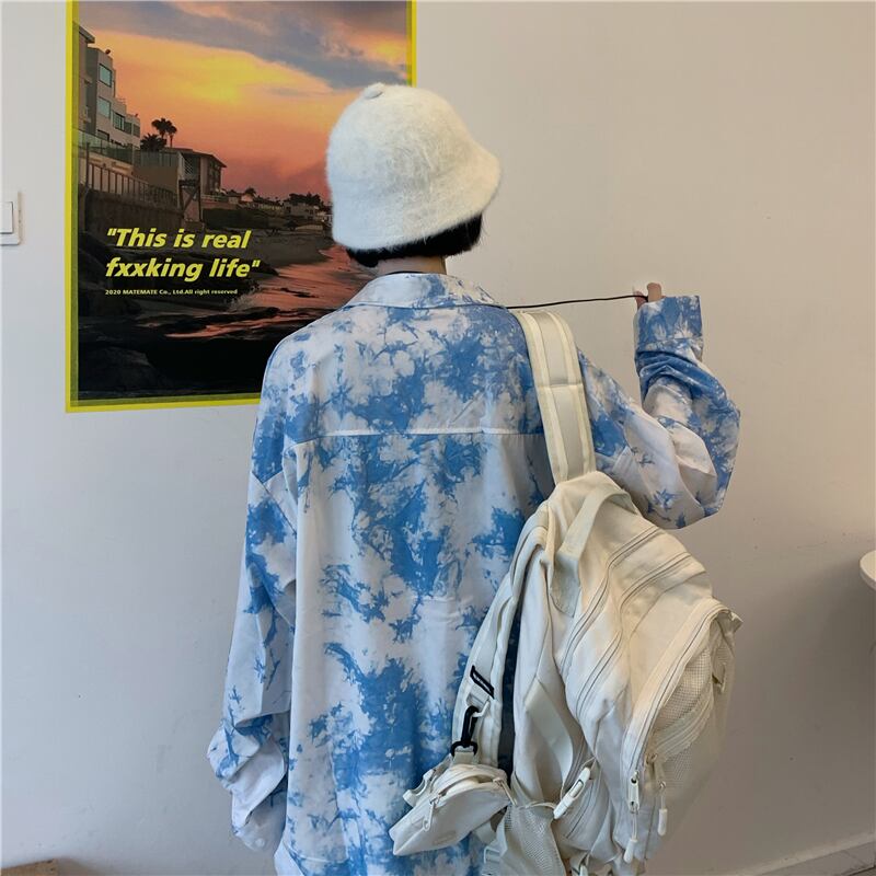 シャツ レディース秋物韓国ファッショントレンドブルーカラースタイルルーズトップス コート ロング 原宿 オータム スクウェア 長袖 デーモン27113494122