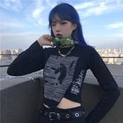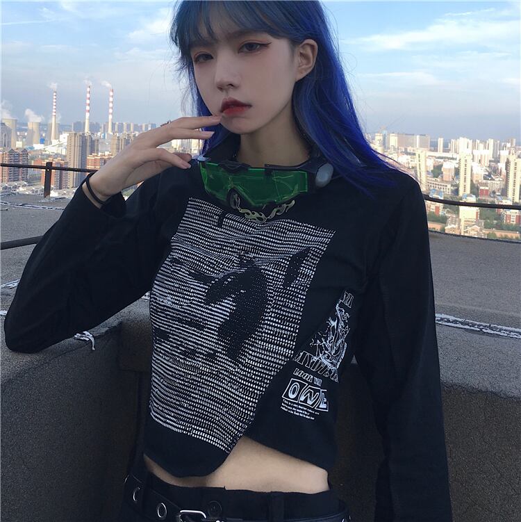 トップス 秋物韓国ファッショントレンドルーズブラックスリムTシャツ ロング オータム ボーイズ 長袖 デーモン23088758449