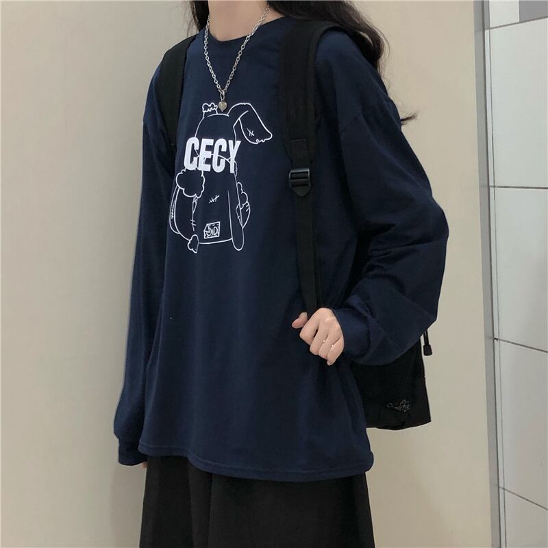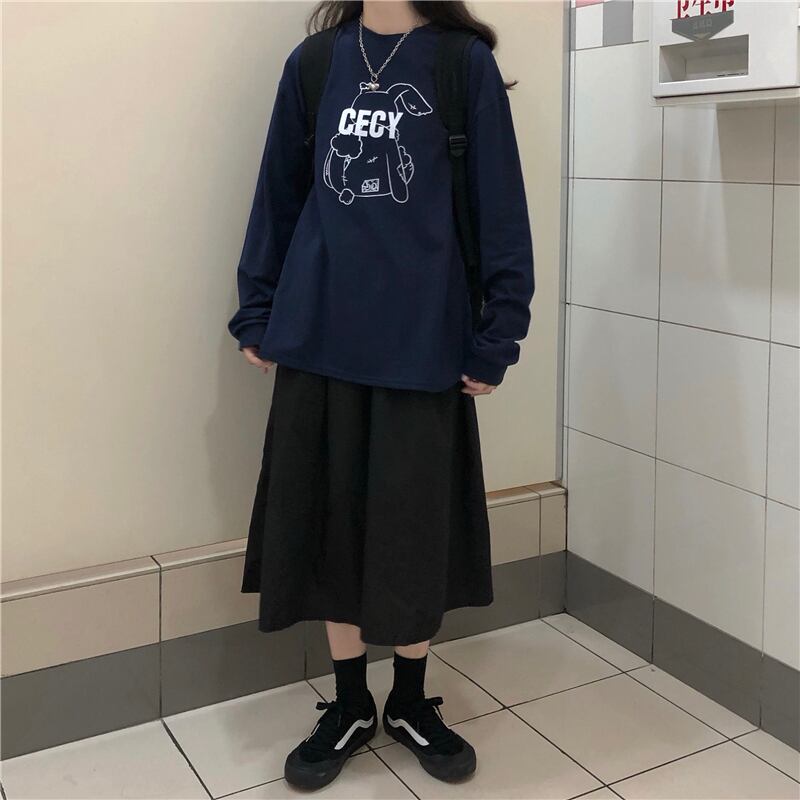 レディース秋物韓国ファッションルーズTシャツトップス ハイウェストウェストスカート ロング オータム 長袖 ウエスト デーモン45268434832