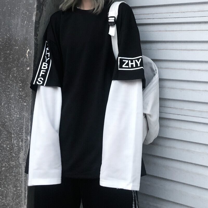トップス レディース韓国ファッショントレンドスタンダードプリントゆったりシャツ 秋物ルーズTシャツ ロング レトロ オータム スタイル 長袖 デーモン38762721955