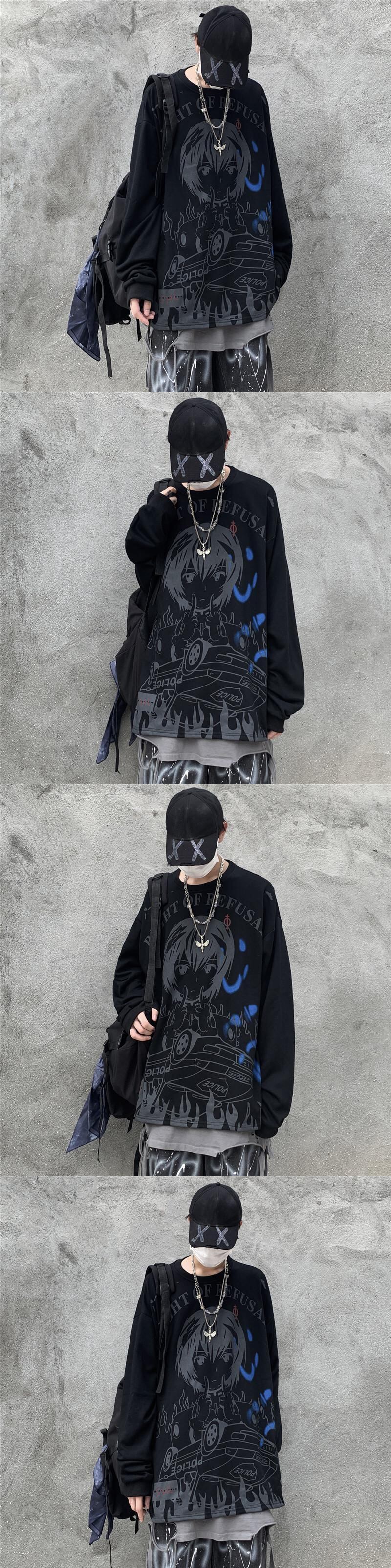 ヴィンテージセーター 秋物韓国ファッショントレンドプリントジャケット ルーズブラックトップス ロング オータム ビンテージ スタイル 長袖 デーモン39811560300