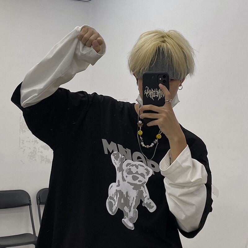Tシャツ秋物トレンド韓国ファッションプリント柄ルーズトップス ロング オータム ステッチ スタイル 長袖 デーモン54945798162
