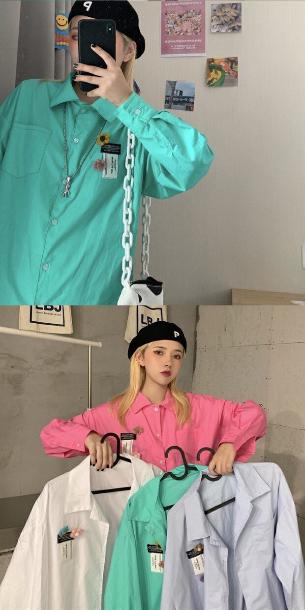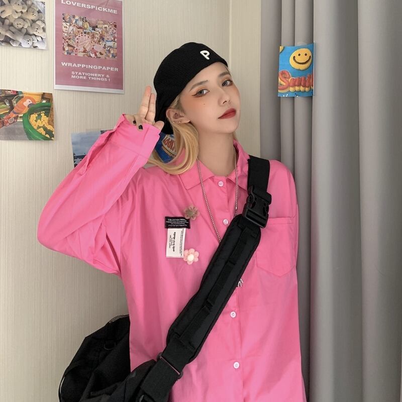 シャツ 秋物韓国ファッショントレンドFlowerデザイン ルーズジャケット ロング オータム フラワーデザイン 長袖 デーモン73913427035