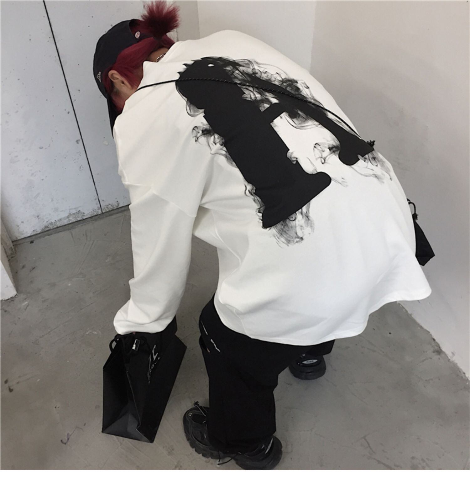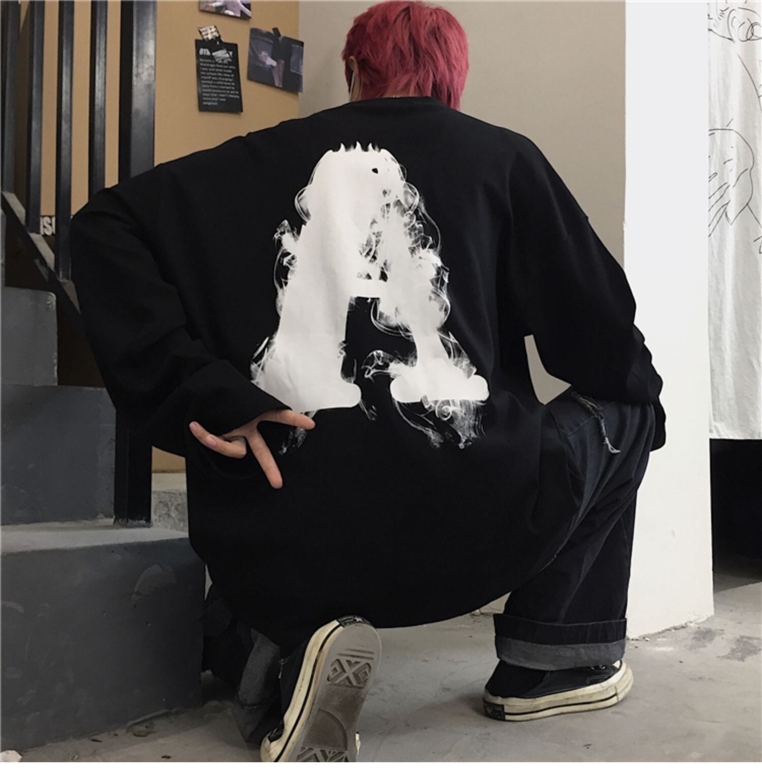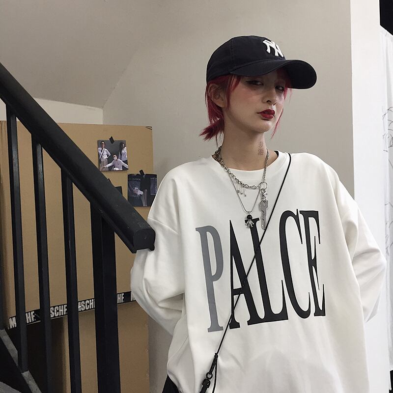 Tシャツレディース秋物トレンド韓国ファッションプリントトップス ルーズ ロング オータム ボーイズ スタイル 長袖 デーモン76077159229
