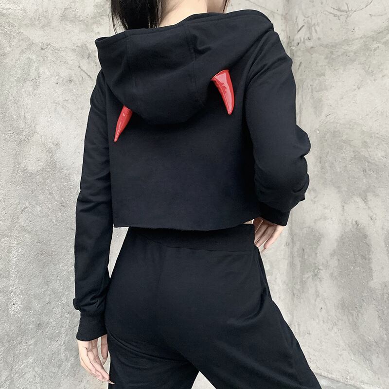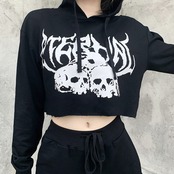 クロップドフードセーター レディースプリント柄 YU54990286111