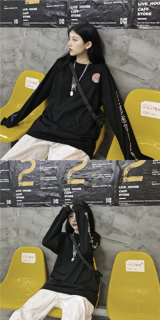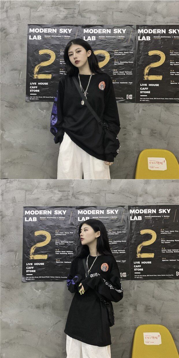 ジャケット 秋物韓国ファッショントレンドスタイルプリントブラックルーズプルオーバー セーター ロング 原宿 オータム ボーイズ 長袖 デーモン78753342473