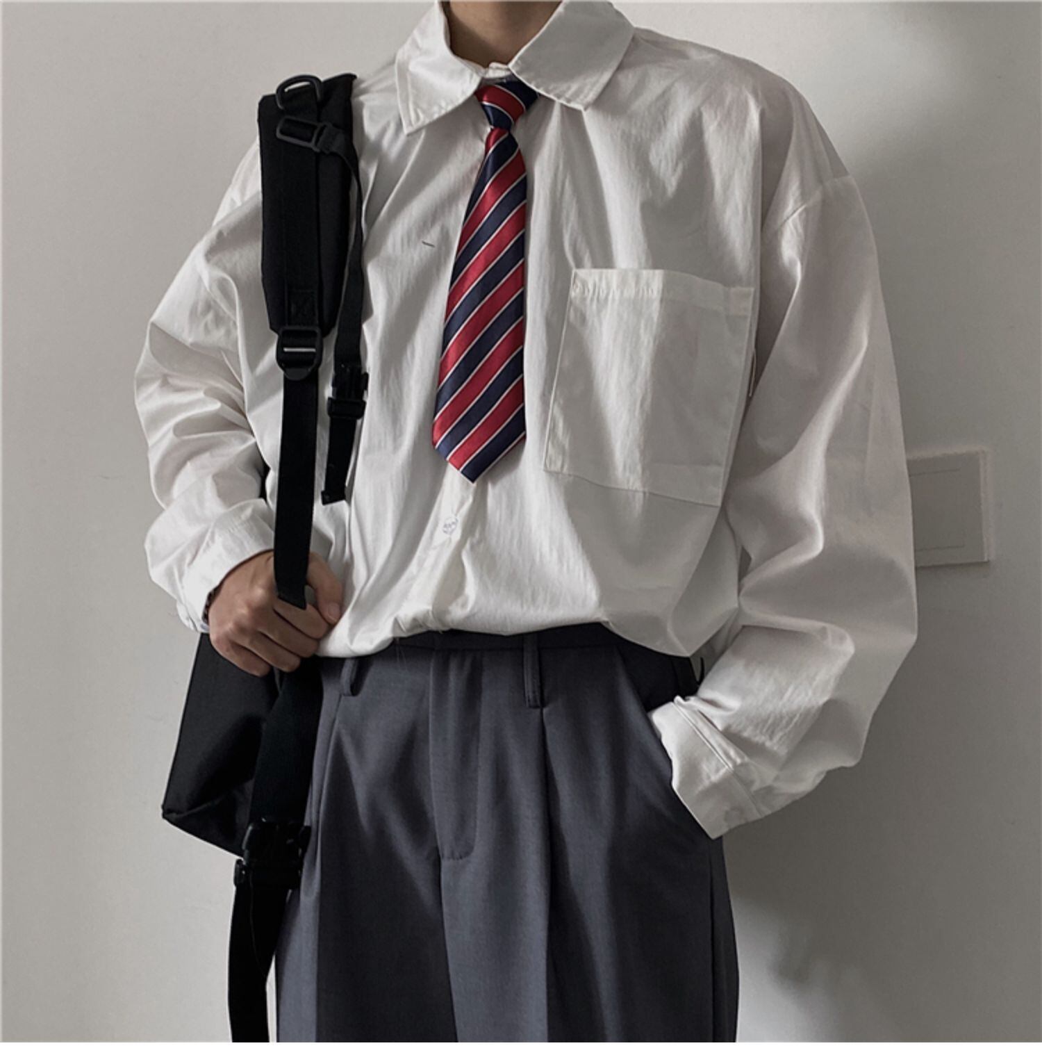 シャツ 秋物韓国ファッショントレンドスタンダードスタイルホワイトルーズトップス コート ロング レトロ オータム ボーイズ 長袖 デーモン19955143521
