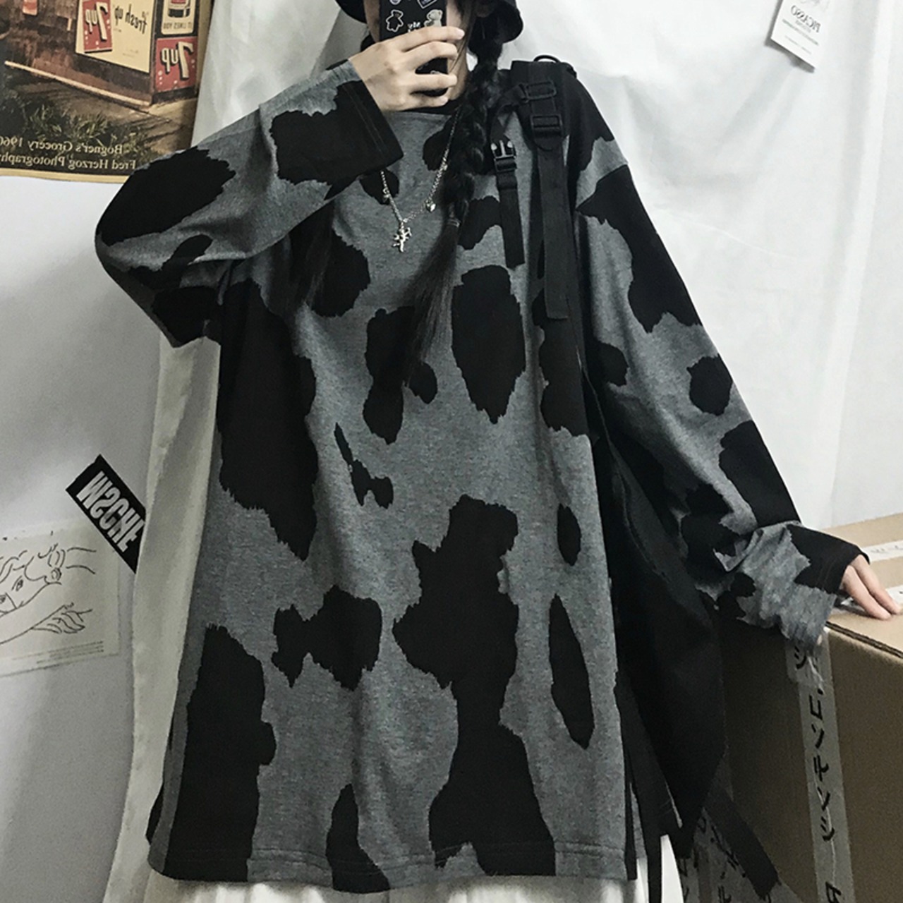 Tシャツシャツ レディース秋物韓国ファッショントレンドスタイルプリント柄ゆったりルーズトップス ロング 原宿 オータム ボーイズ 長袖 デーモン89492150131