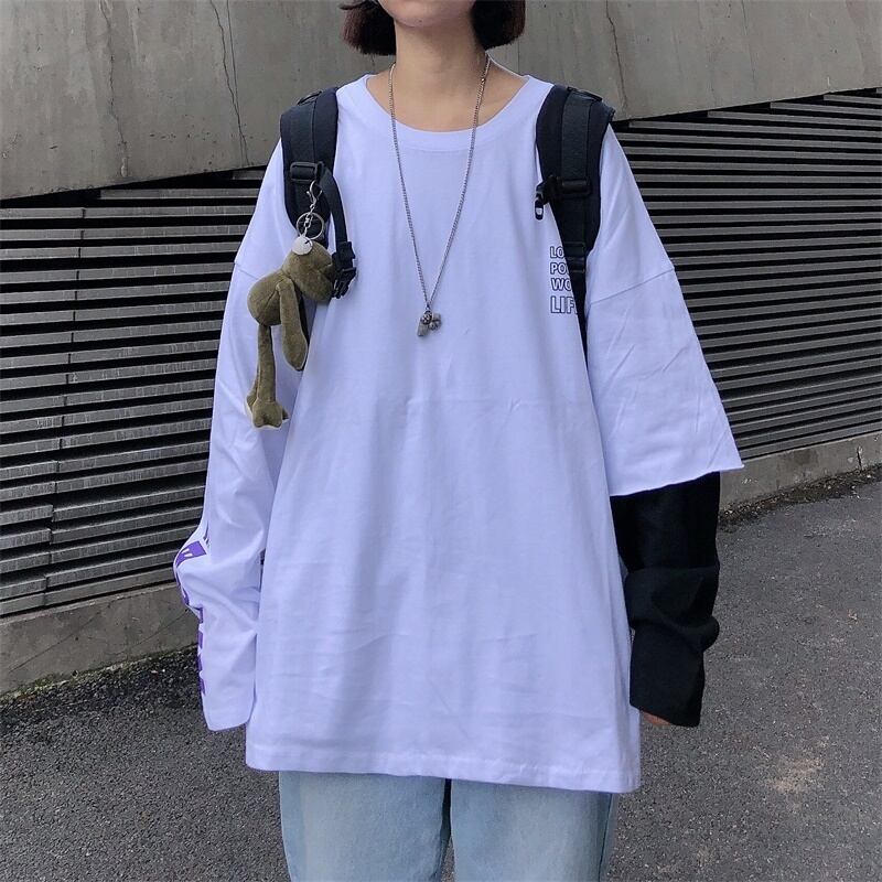 Tシャツレディース秋物韓国ファッショントレンドスタイルルーズトップス ロング 原宿 オータム ボーイズ 長袖 デーモン5539267984