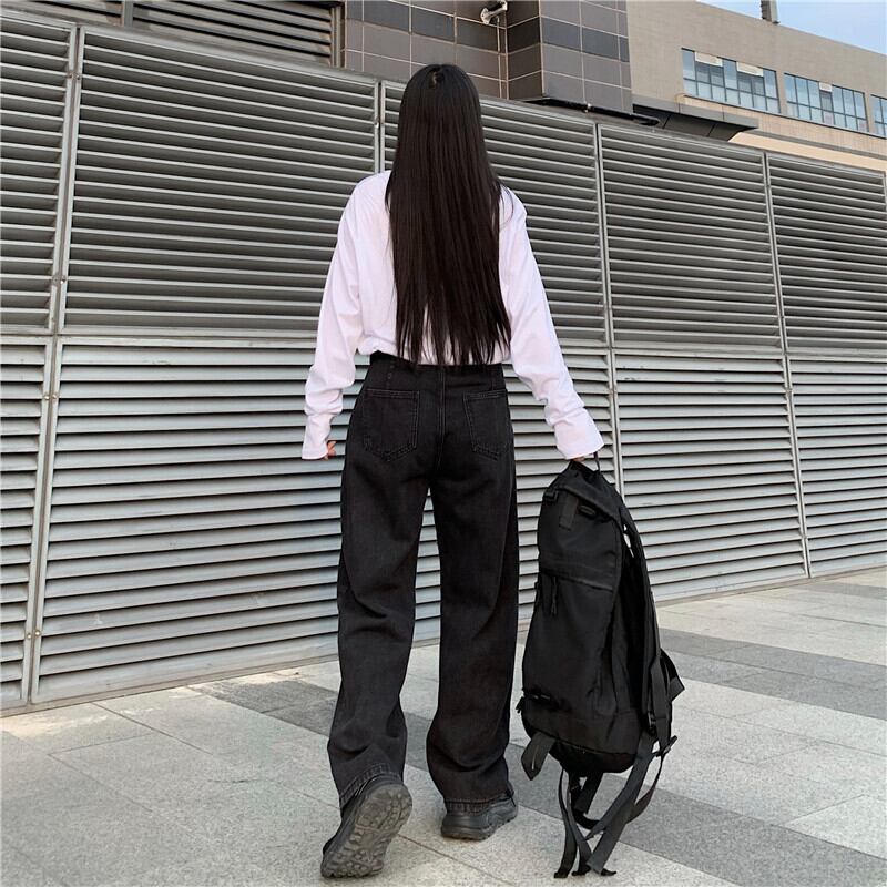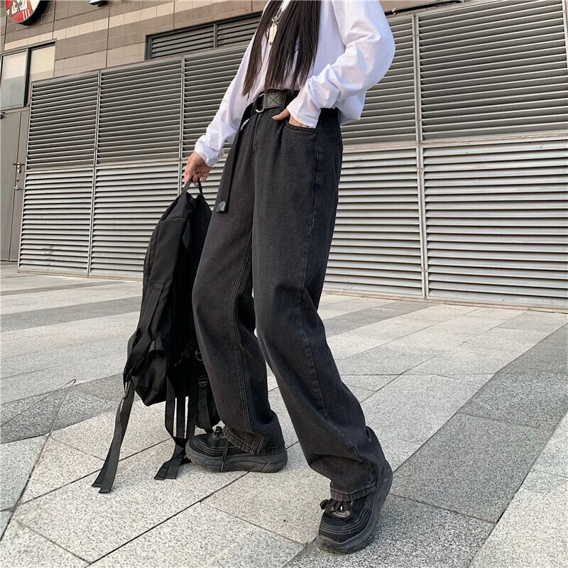 ジーンズ レディース韓国ファッショントレンドブラックルーズパンツ ハイウェストウェスト スタイル ウエスト デーモン84366114889