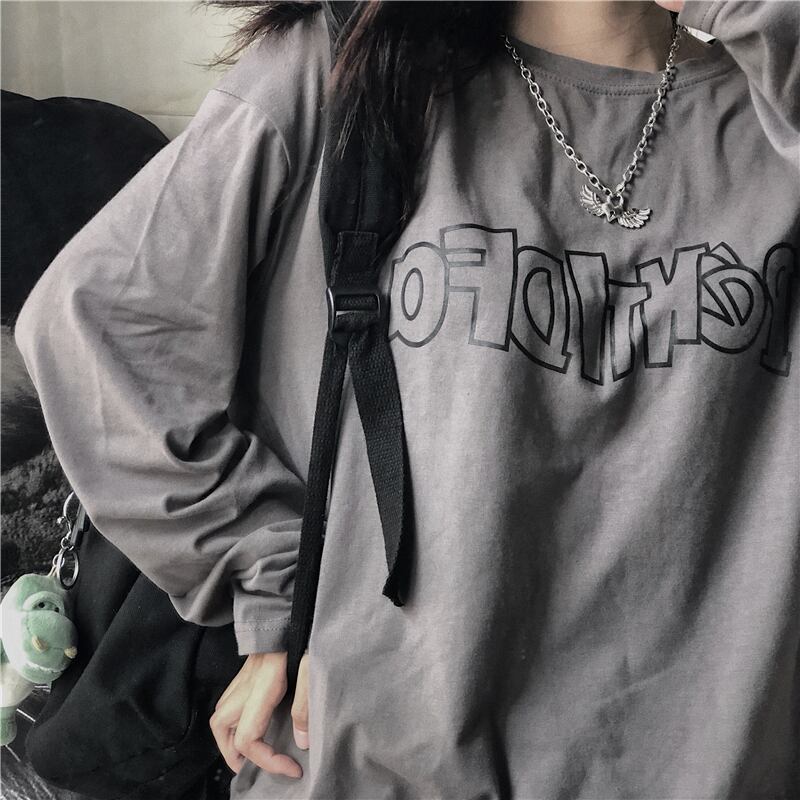 秋物コート レディーストレンド韓国ファッションプリントホワイトルーズTシャツ ロング 原宿 オータム ボーイズ スタイル 長袖 デーモン40577751250