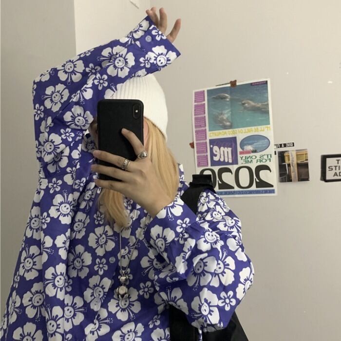 秋物トップス レディーストレンド韓国ファッションスタンダードFlowerデザイン シャツ スタイルルーズジャケット ロング レトロ オータム フラワーデザイン ボーイズ 長袖 デーモン89954548607