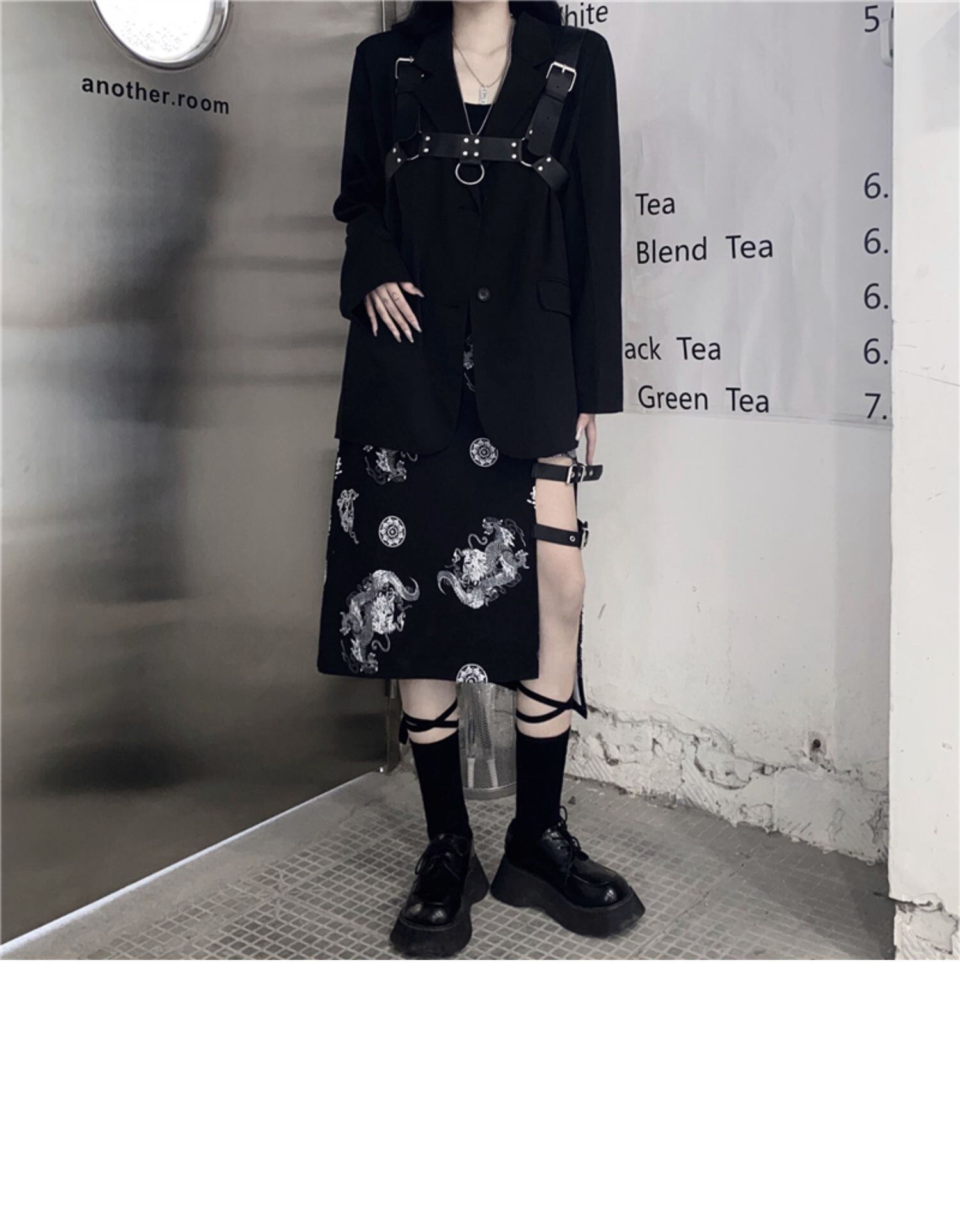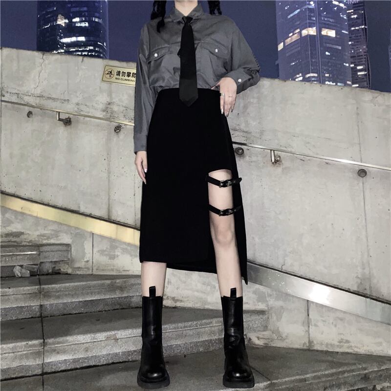 スカート レディース夏服トレンドスタンダードベルト バックルブラックAラインハイウェストウェスト薄手 レトロ 夏物 ハーネス ウエスト ミドル丈 デーモン63240228236