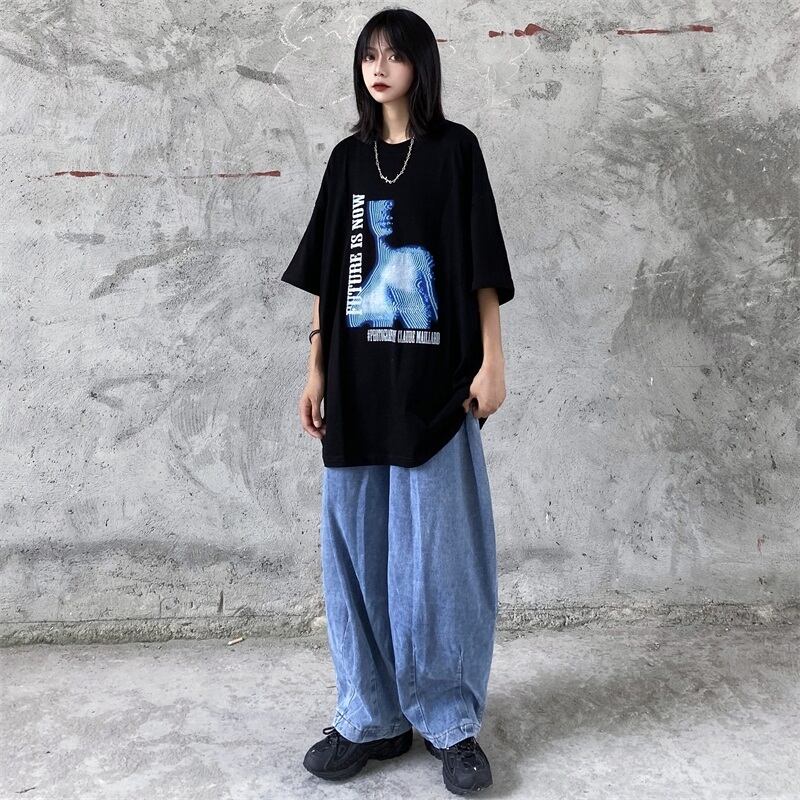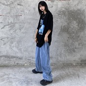 パンツ レディーストレンド韓国ファッションスタンダードハイウェストウェストジーンズ ルーズ薄手 レトロ ウエスト デーモン5971989671