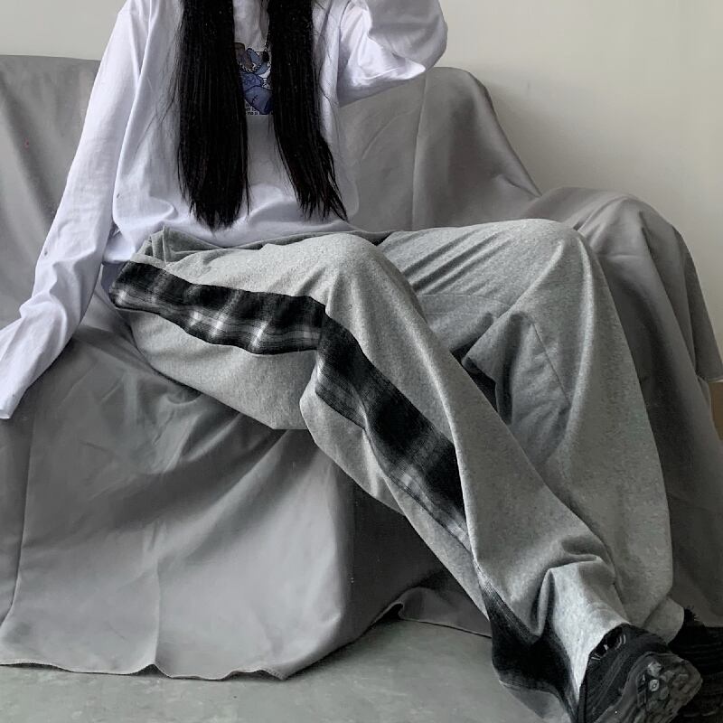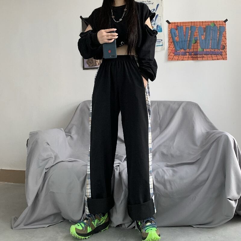 パンツ レディース韓国ファッショントレンドスタイルワイドレッグハイウェストウェストルーズカジュアル 原宿 ワイドパンツ ステッチ ウエスト デーモン58301401514