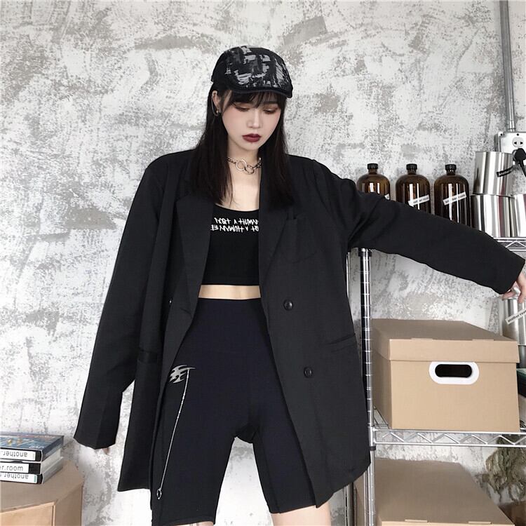 ジャケット レディース秋物韓国ファッショントレンドスタンダードブラックルーズカジュアルトップス レトロ オータム ボーイズ スタイル デーモン51151288915
