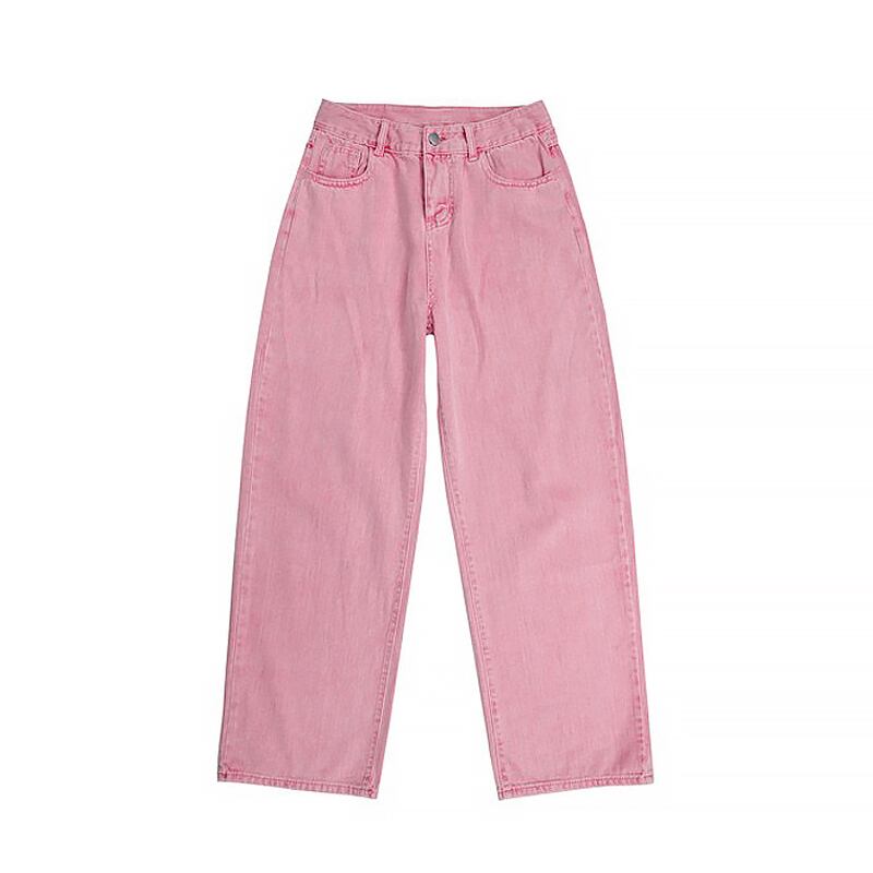 パンツ レディース韓国ファッショントレンドスタンダードジーンズ ハイウェストウェストルーズワイドレッグ ピンク レトロ ワイドパンツ スタイル ウエスト デーモン83587068389