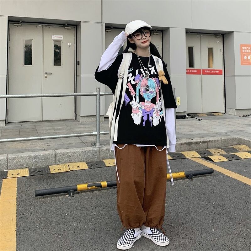 スタイルTシャツレディーストレンドプリント韓国ファッションルーズトップス ロング 原宿 長袖 デーモン61665066163