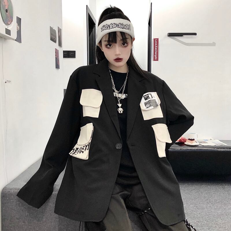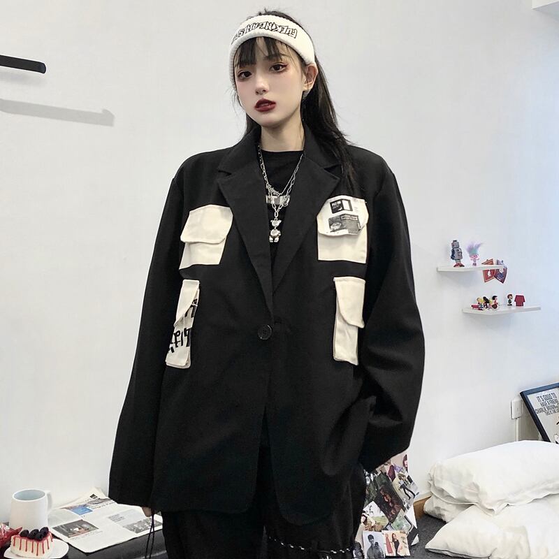 ジャケット レディース秋物スタイル韓国ファッショントレンドスタンダードルーズブラックトップス レトロ オータム ステッチ ボーイズ デーモン76681905686