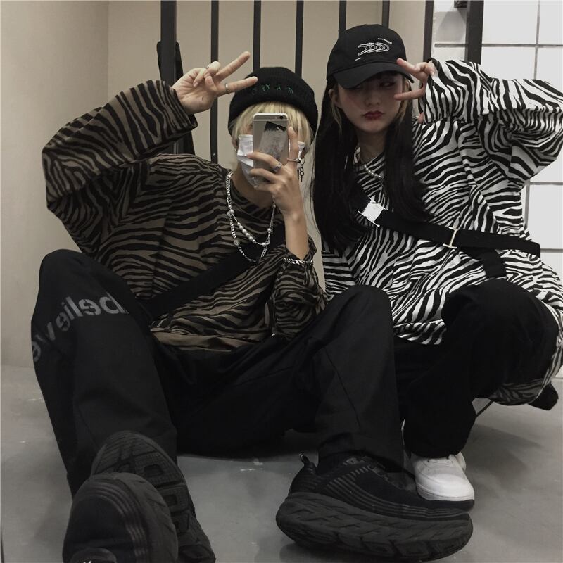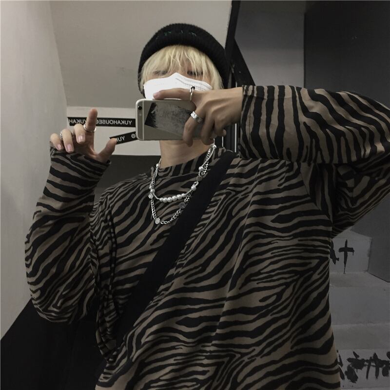 Tシャツシャツ レディース秋物韓国ファッショントレンドダークパターンゆったりラウンドネックルーズトップス ロング オータム Oネック スタイル 長袖 デーモン21815630331