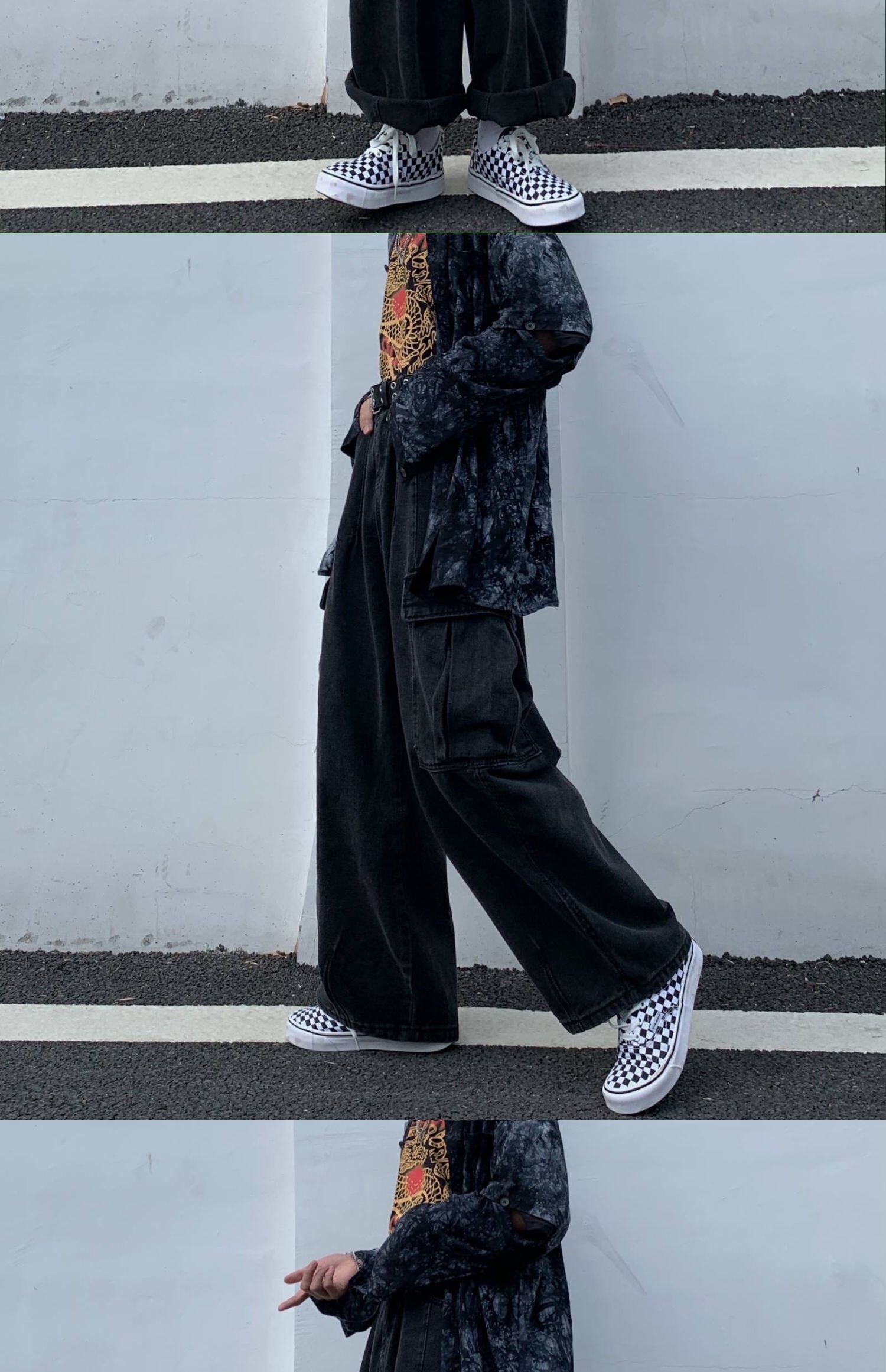 ジーンズ レディース韓国ファッショントレンドブラックルーズパンツハイウェストウェストワイドレッグパンツ ワイドパンツ スタイル ウエスト デーモン62206481828