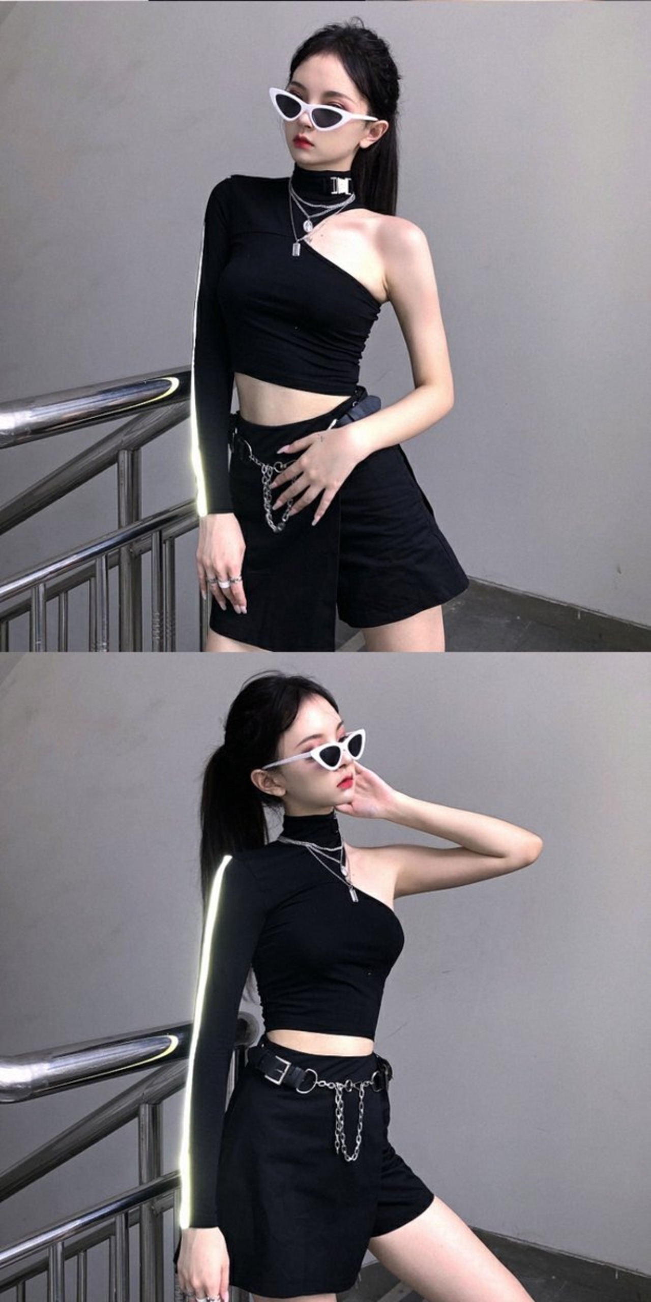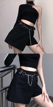 レディースパンツ秋物韓国ファッショントレンドブラックミニスカートウェストチェーン ショートスリムトップス オータム スタイル ウエスト デーモン63356512883