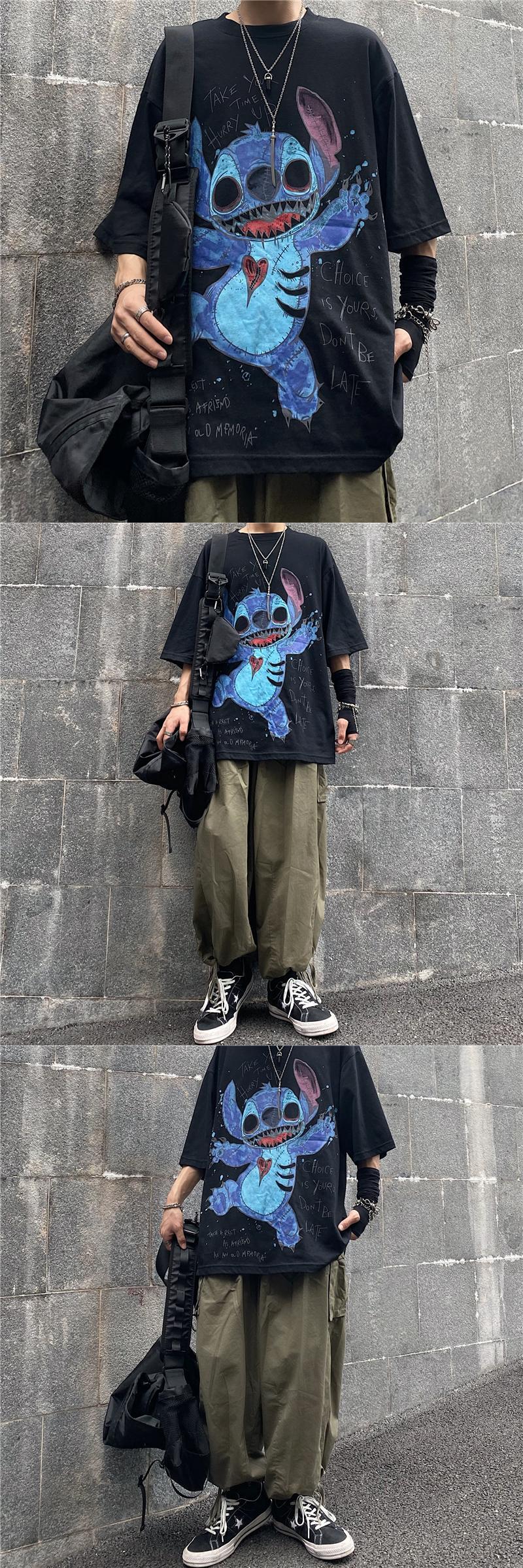 レディーストレンド韓国ファッションスタンダードプリントTシャツ夏服ルーズトップス レトロ 夏物 ボーイズ デーモン60876104801