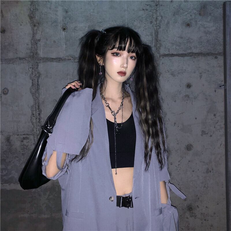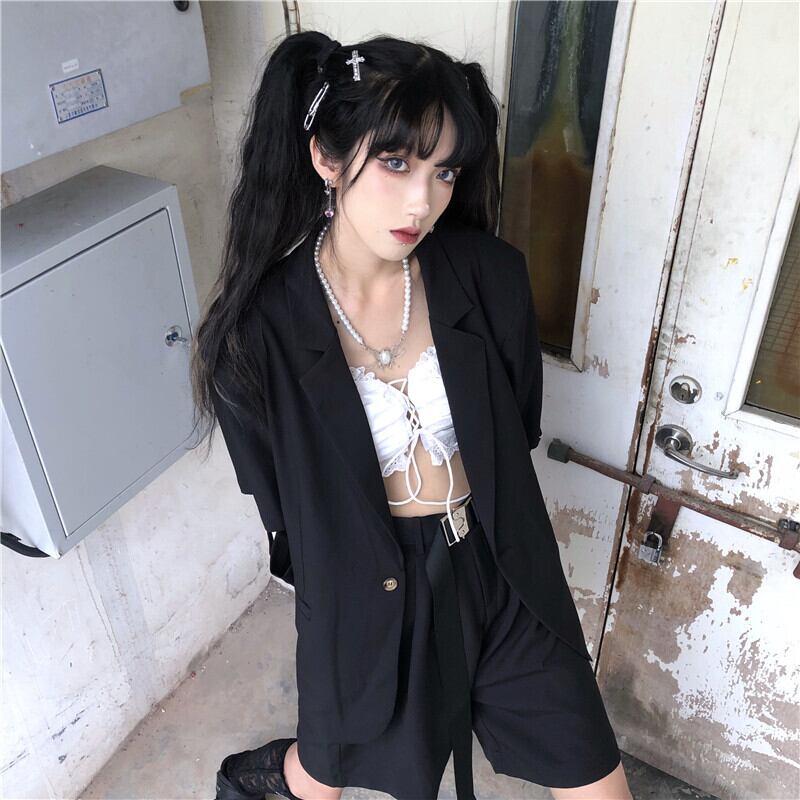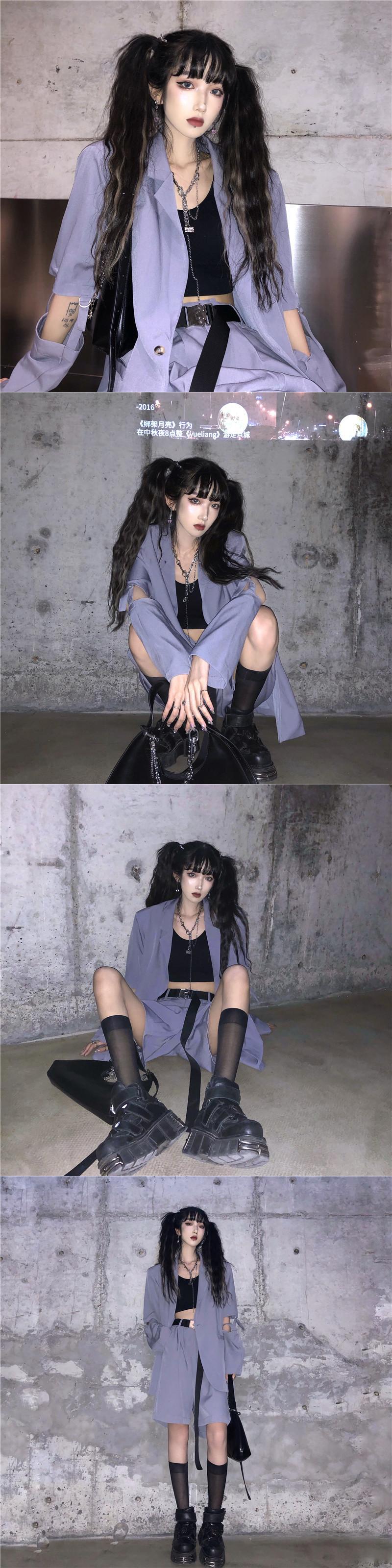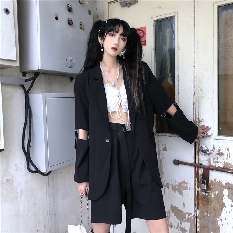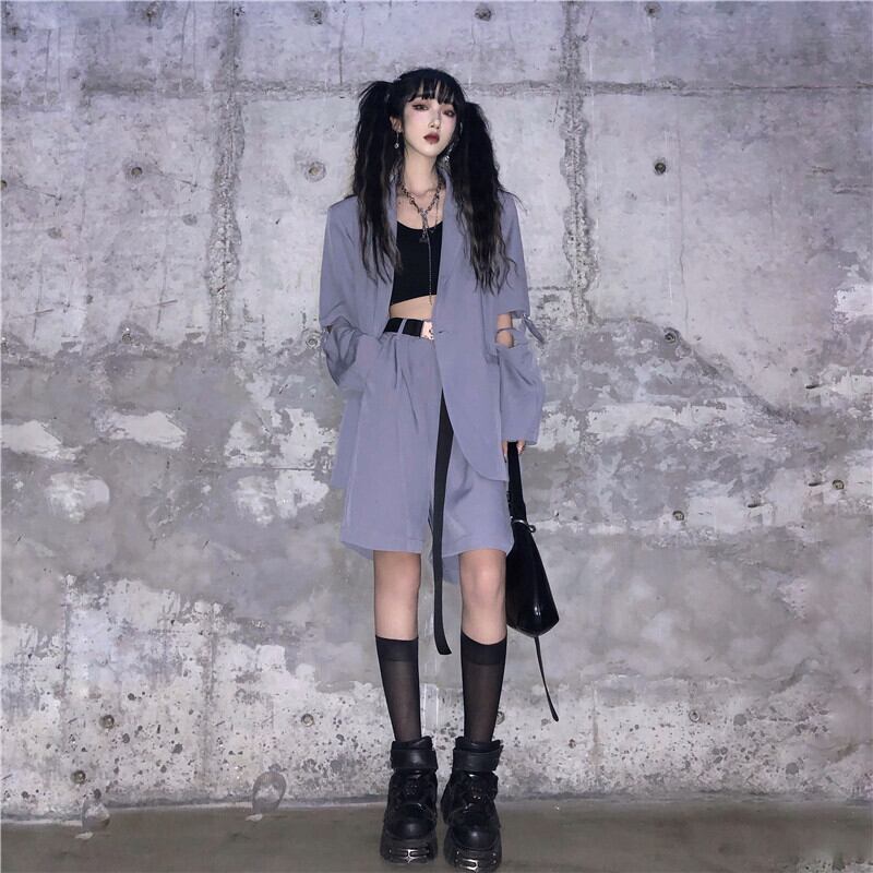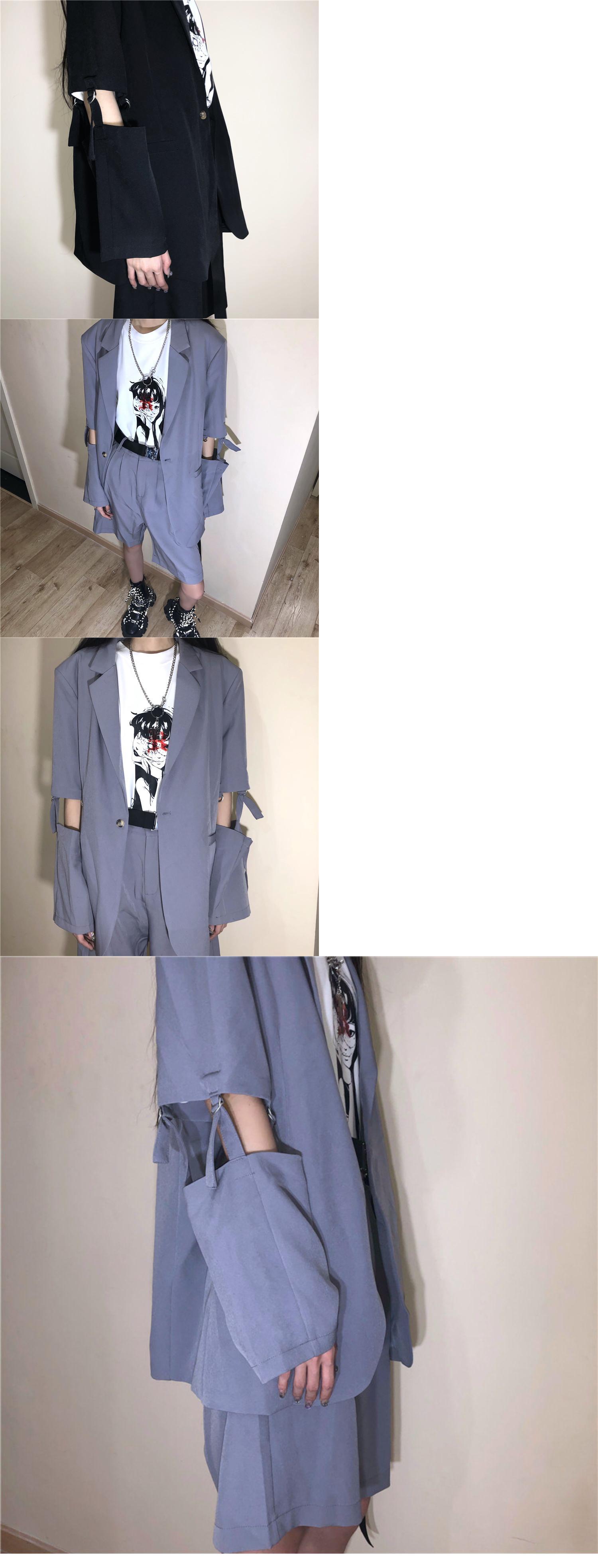 レディース韓国ファッショントレンドスタンダードルーズジャケット カジュアルショーツ ロング レトロ スタイル 長袖 デーモン46072408657
